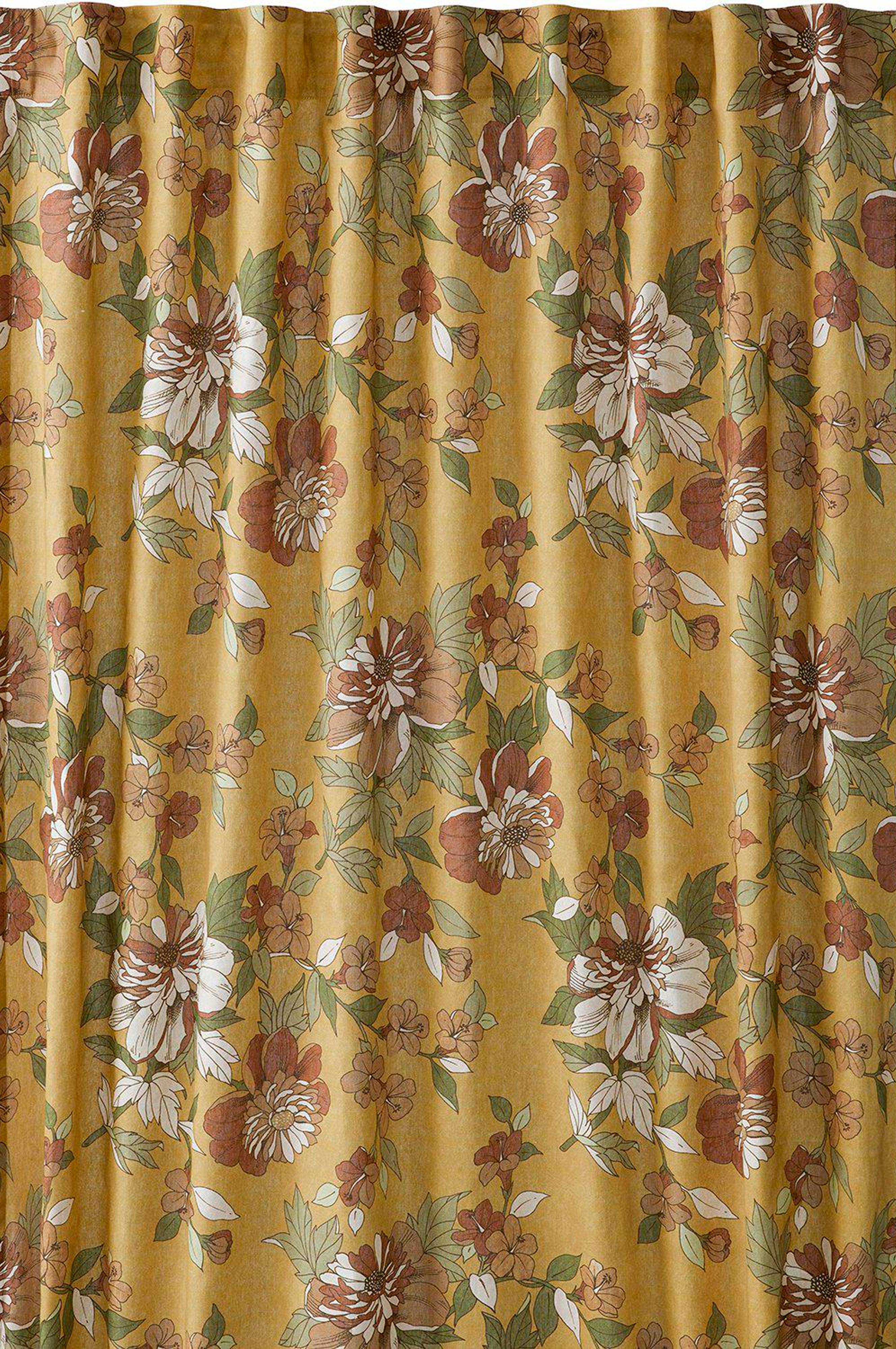 2-pk gardinlengder i bomull med trykt mønster med multibånd i overkant, faldede langsider og overlocksøm i nederkant. Bruk hurtigfaldebånd for å få riktig lengde på gardinen. Målet på hver gardin er 140x250cm. Multibånd er en fleksibel løsning som gjør det mulig å henge opp gardinen med fingerkroker, hekter eller direkte på stang, avhengig av hvilken type folder og hvilket fall man vil ha på gardinen. 100% bomull.