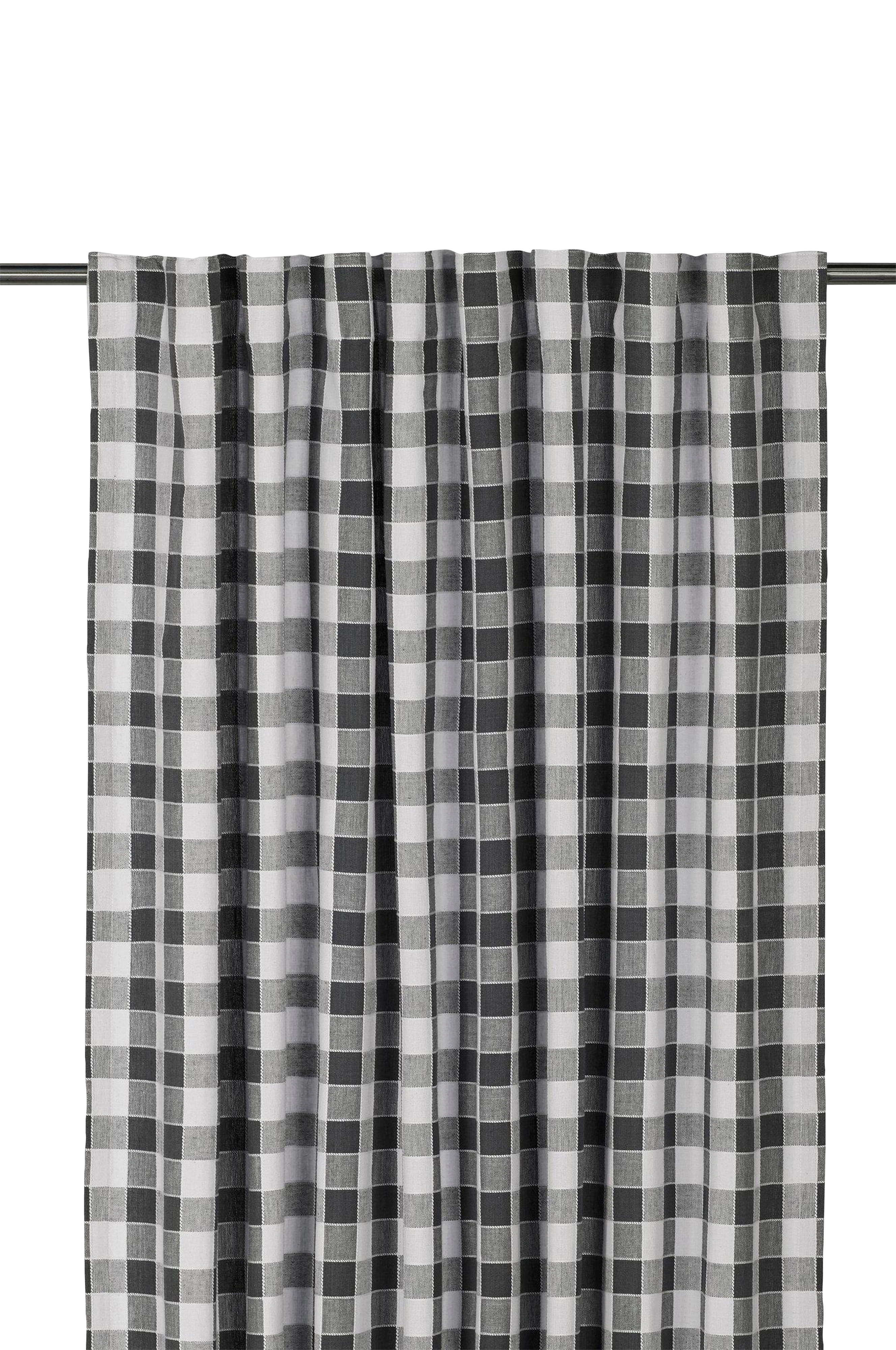 2-pk gardinlengder i bomull med garnfarget rute og multibånd i overkant, faldede langsider og overlocksøm i nederkant. At den er garnfarget gjør at den er like fin på baksiden som forsiden. Bruk hurtigfaldebånd for å få riktig lengde på gardinen. Multibånd er en fleksibel løsning som gjør det mulig å henge opp gardinen med fingerkroker, hekter eller direkte på stang, avhengig av hvilken type folder og hvilket fall man vil ha på gardinen. 100% bomull. 2x140x280 cm.