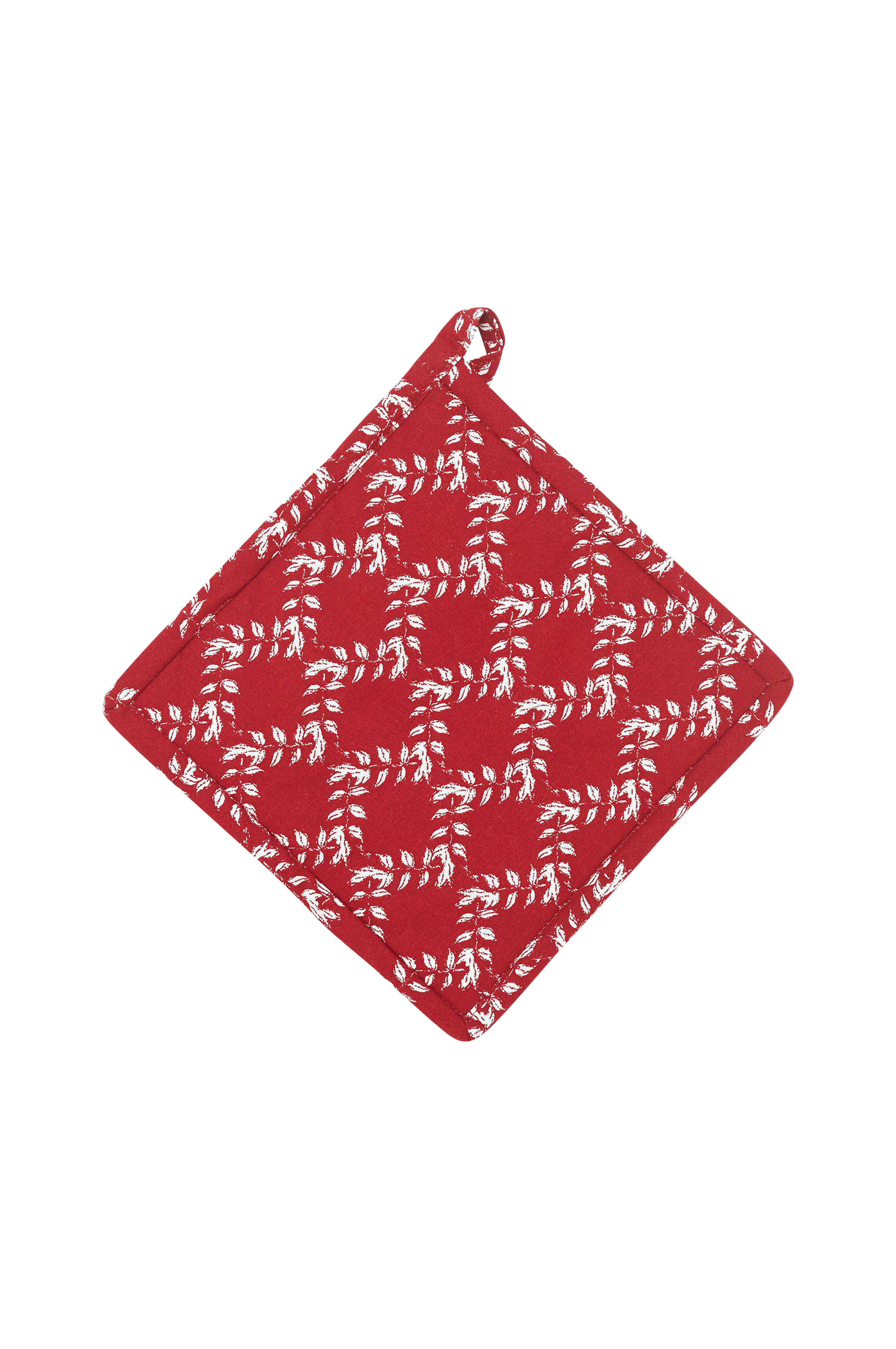 Gryteklut i bomullsvev med trykt mønster av designer Louise Videlyck. Grytekluten har løkke for oppheng. 100% bomull.