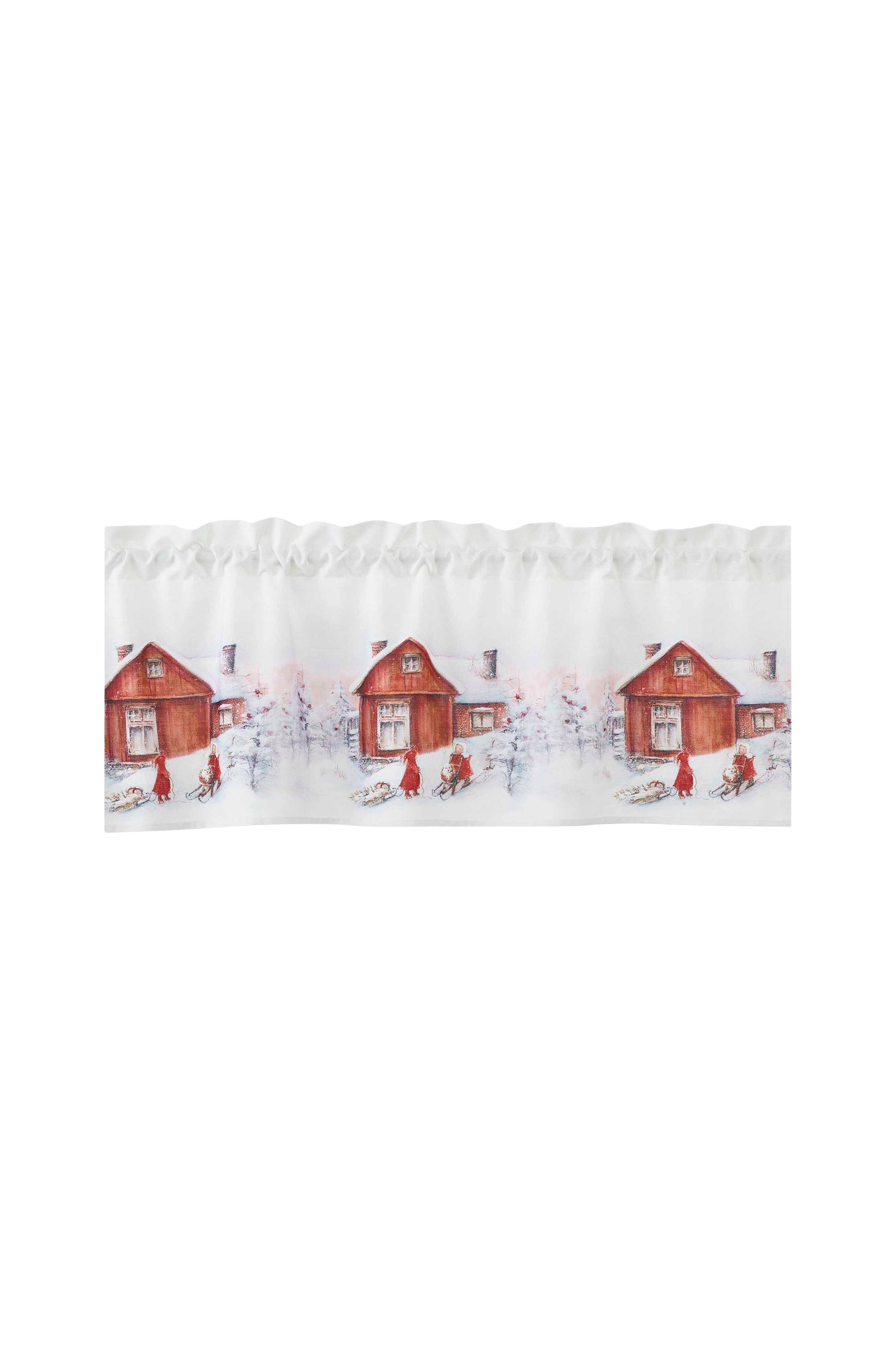 Gardinkappe med trykt motiv av den norske kunstneren Grethe Solemsløkk. 6 cm høy kanal øverst og 3 cm rynkehode. Faldet i nederkant. Størrelse 50x250 cm. 100% polyester.