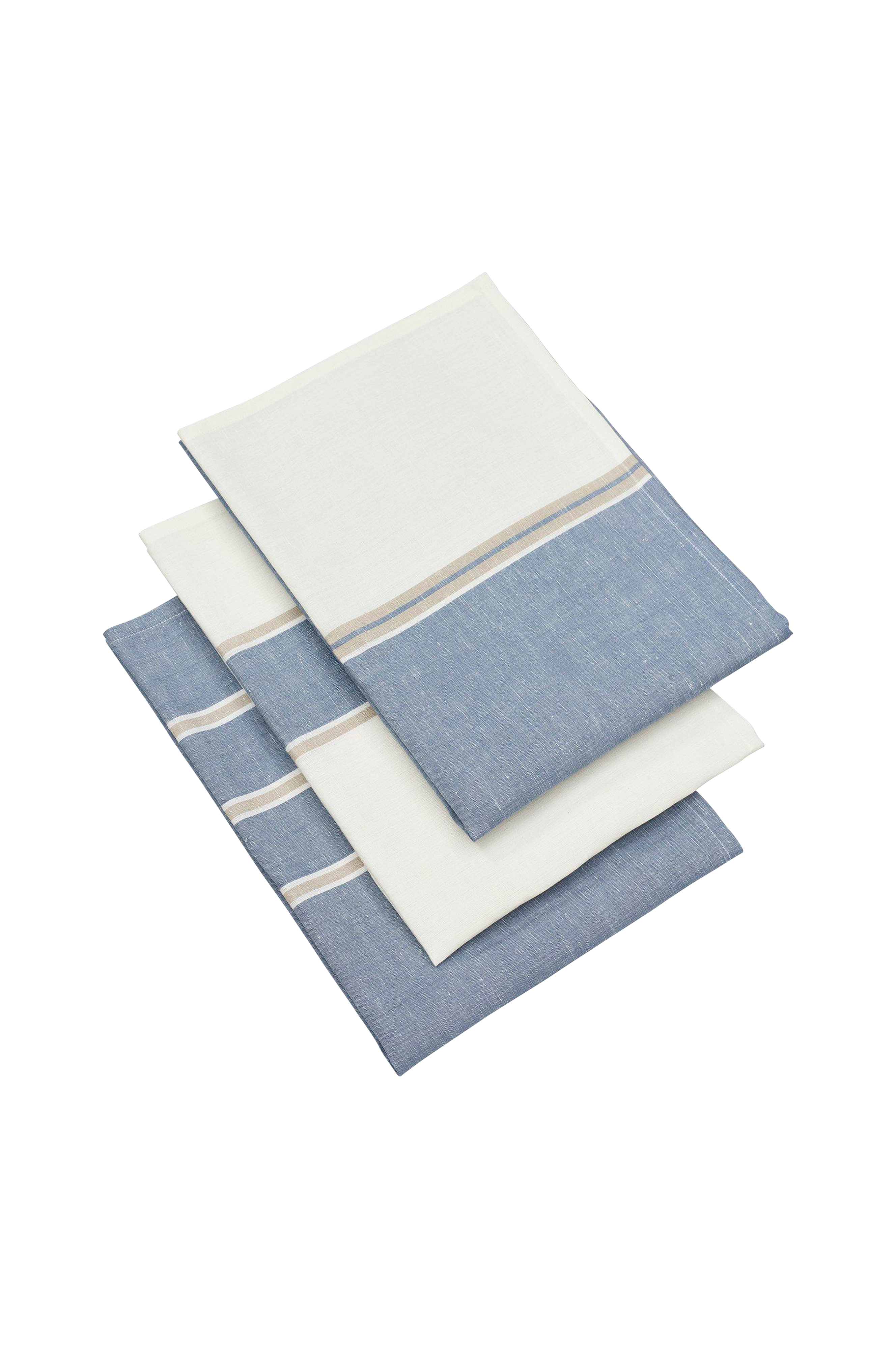 3-pk kjøkkenhåndklær i halvlin med matchende striper. Kjøkkenhåndkleet har en lett vasket effekt. Lin absorberer godt, loer ikke og er derfor en utmerket kvalitet for kjøkkenhåndklær. 50% lin, 50% bomull.