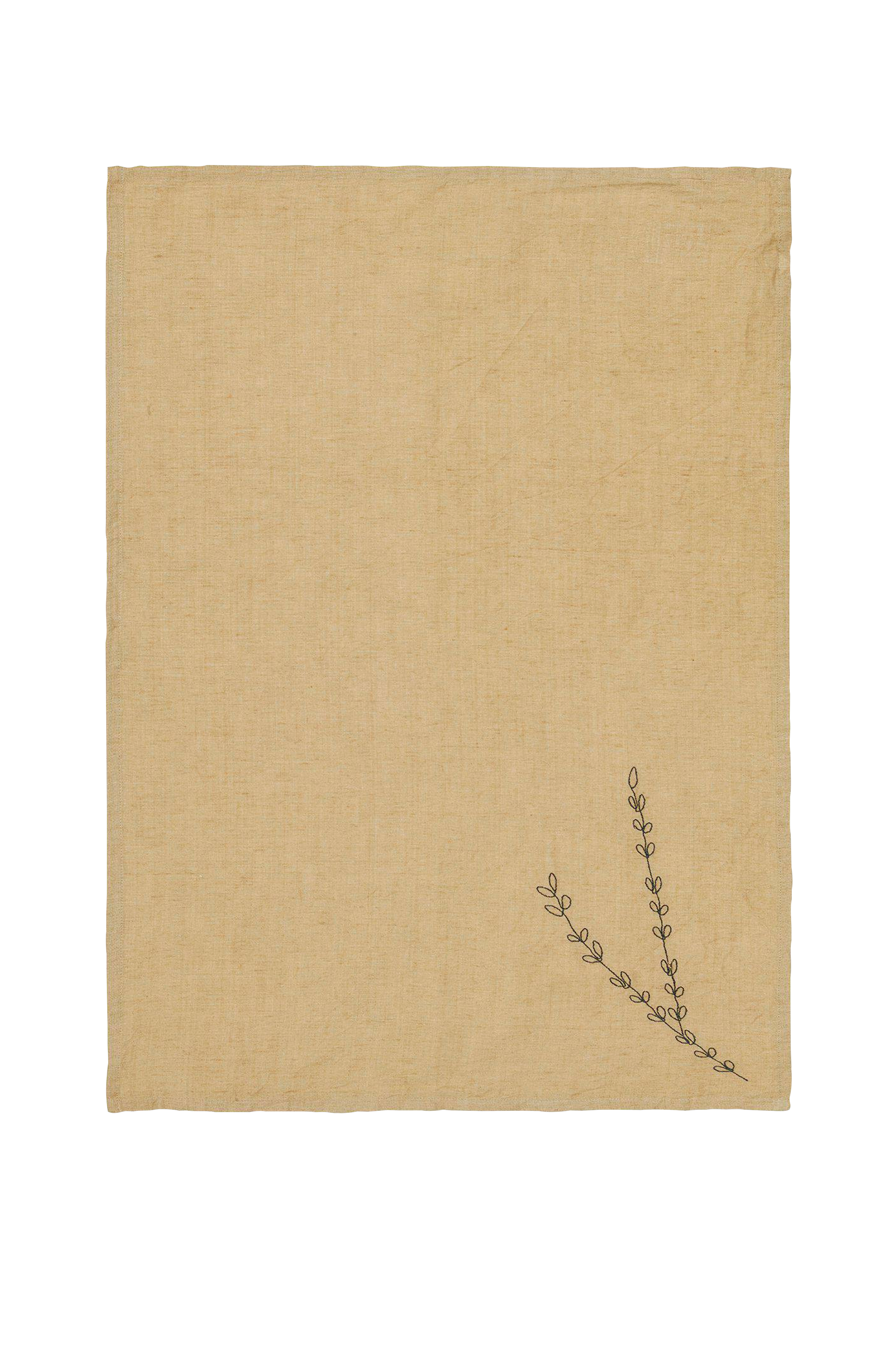 Amie er en serie produkter i tynn halvlin. Kjøkkenhåndkleet er 50x70 cm og har et brodert mønster nederst i hjørnet. Lin absorberer bra, loer ikke og derfor er det en utmerket kvalitet for kjøkkenhåndklær. 50% lin, 50% bomull.