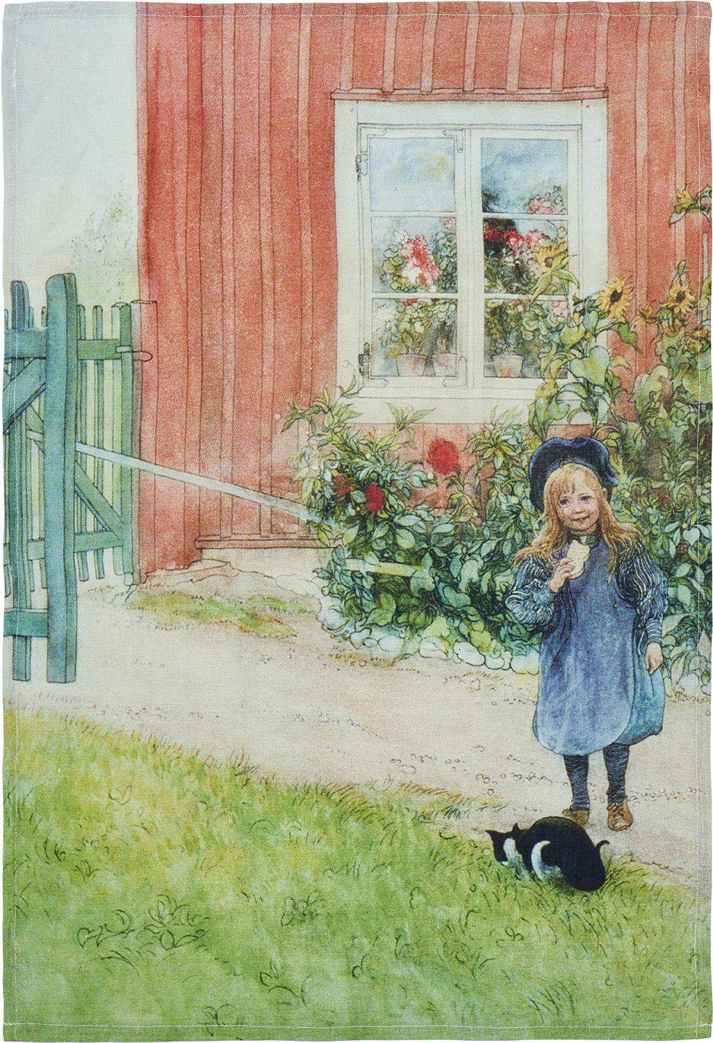 Velkommen, kjære du, til Carl Larsson og hans hustru! Gården er en kjøkkenhåndkle i 100% lin med trykt mønster. Lin absorberer godt, loer ikke og er derfor en utmerket kvalitet for kjøkkenhåndklær. Mål 50x70 cm.