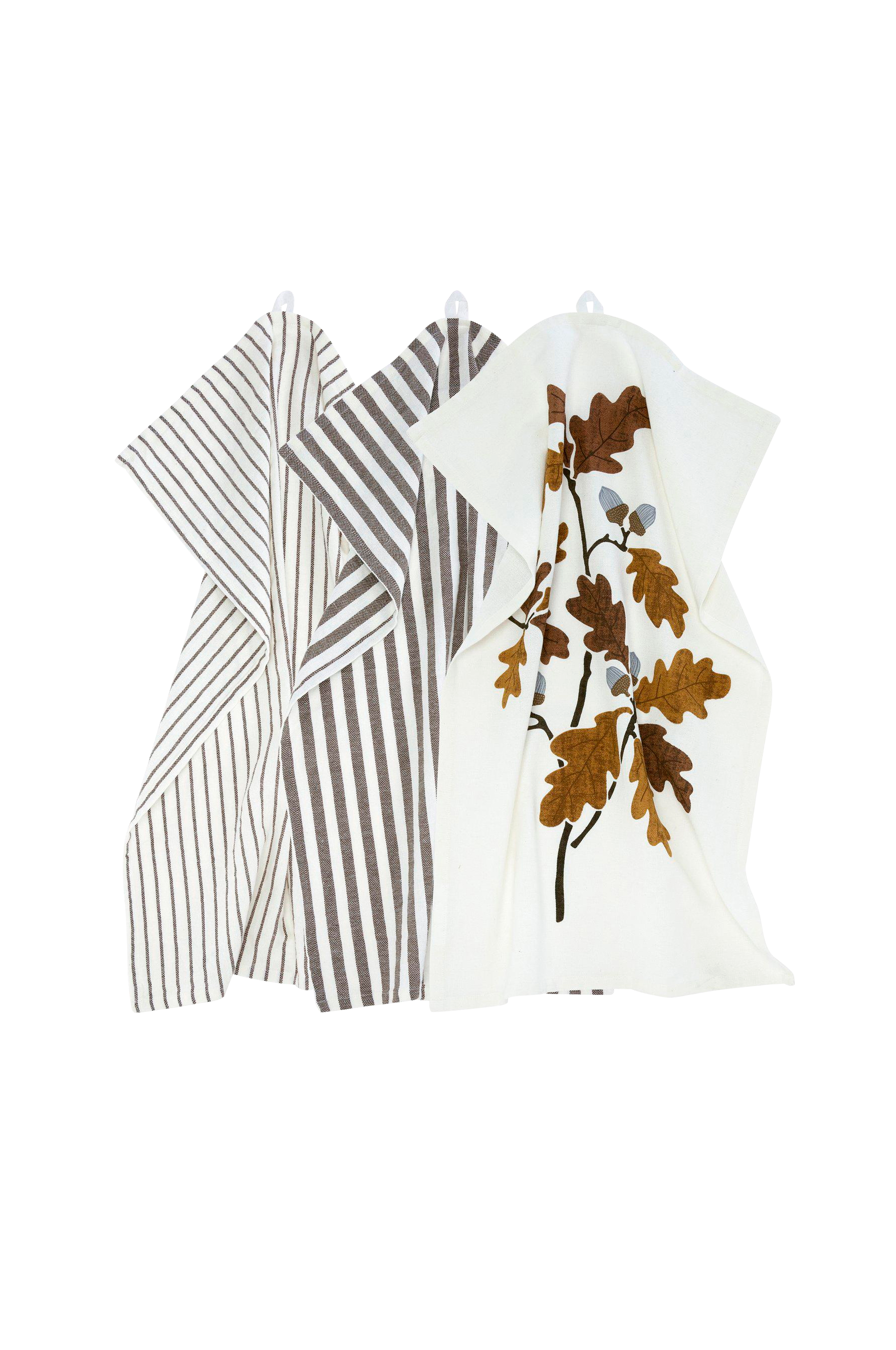 3-pk kjøkkenhåndklær med to garnfargede striper samt trykt motiv. Kjøkkenhåndkleet i myk bomull har en lett vasket effekt. Mål 47x70 cm. 100% bomull.