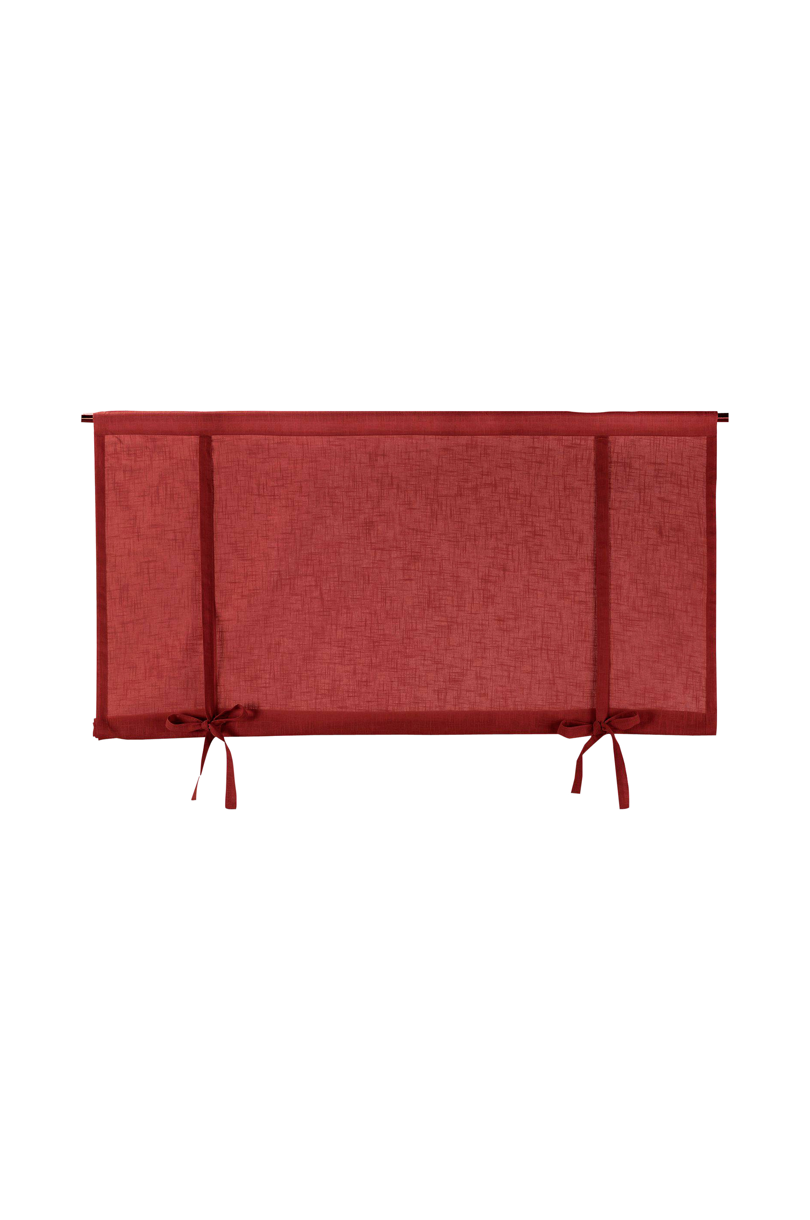 Liftgardinkappe med knyting i ensfarget bomullsstoff med diskre veveeffekt som gir stoffet liv. Kappen har kanal i over- og nederkant, og knytes til ønsket høyde med to knytebånd som er fastsydde i overkant. Den er 140 cm bred og 90 cm høy i utfelt tilstand.