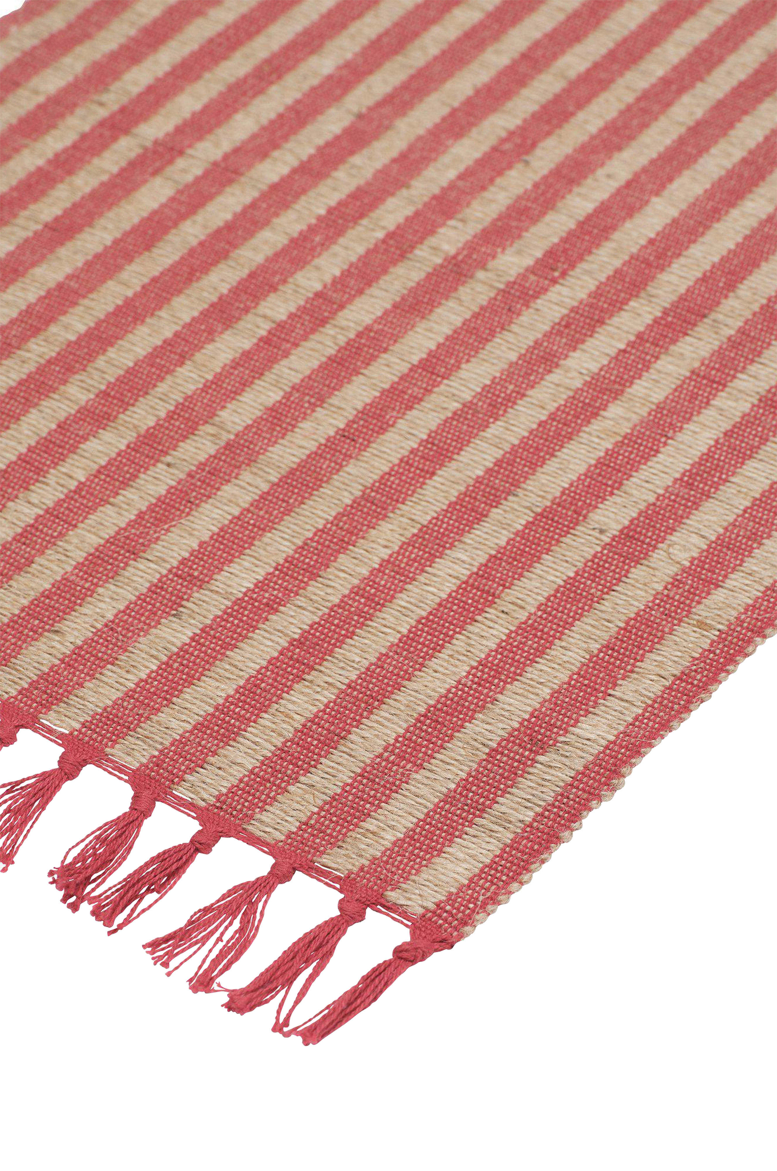 Vevd bordløper i stripete design med bomulls-/jutegarn og frynser. Størrelse 33x120 cm uten frynser. Produktet er sertifisert i henhold til standard 100 by oeko-tex®. Sertifiseringen garanterer at produktet er testet og fritt for stoffer som kan være helse- og miljøskadelige.