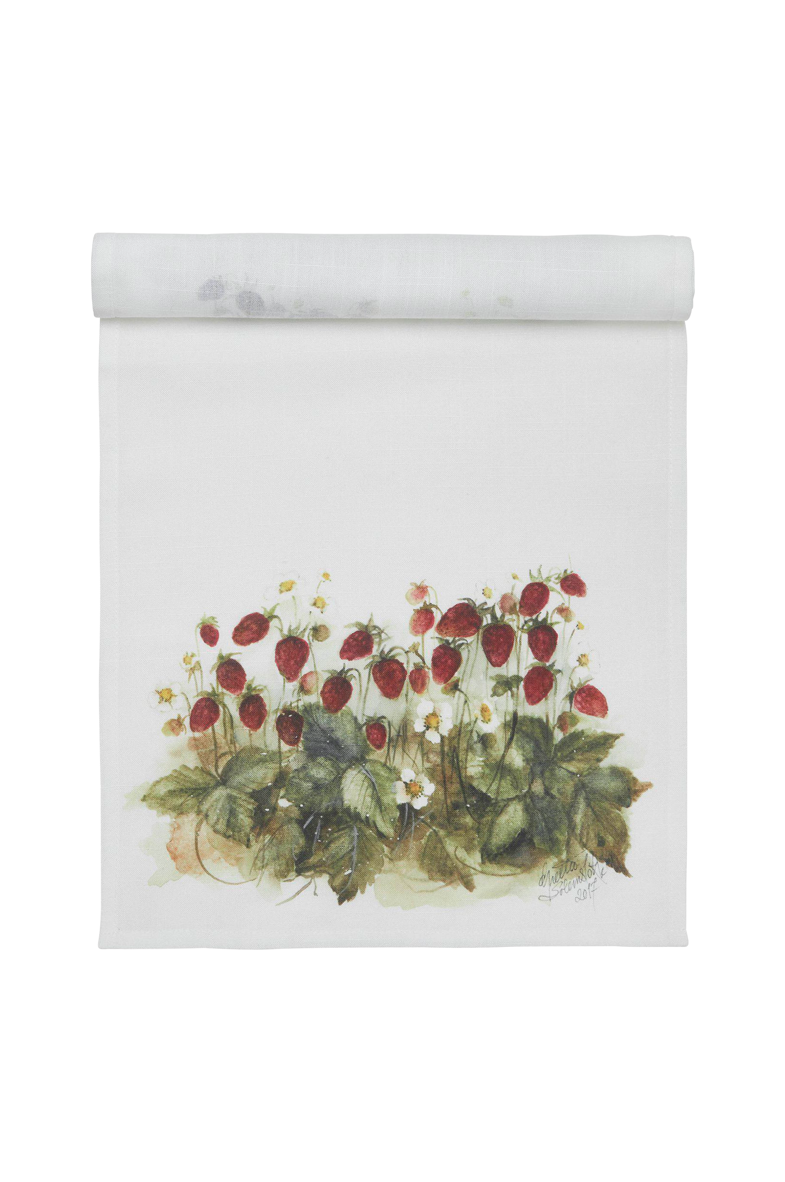 Bordløper med trykt motiv av den norske kunstneren Grethe Solemsløkk. Mønsteret er konsentrert til løperens kortsider. 100% polyester.