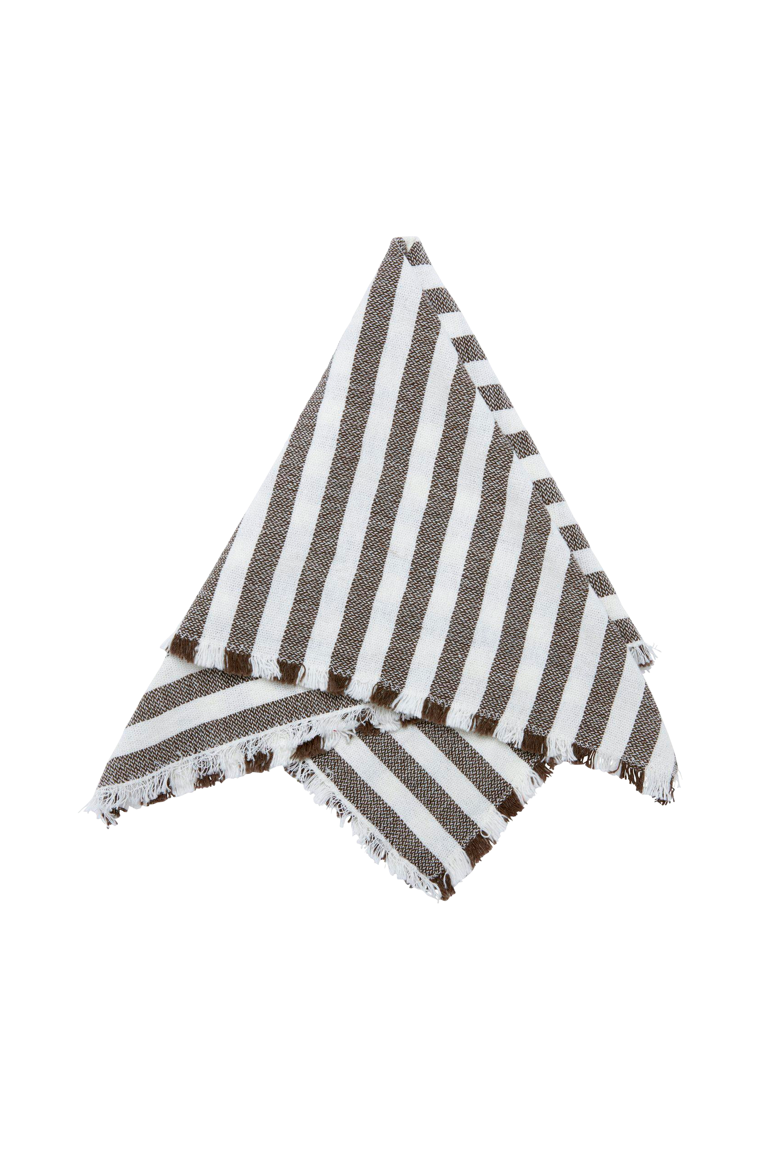Serviett i myk bomullkvalitet og lett vasket følelse. Garnfargede striper som gjør at den er lik på begge sider. Frynser på alle sider. Servietten er 45x45 cm. Dekk gjerne med matchende duk, og legg et dukunderlag under duken for en skikkelig luksuriøs oppdekking. 100% bomull.