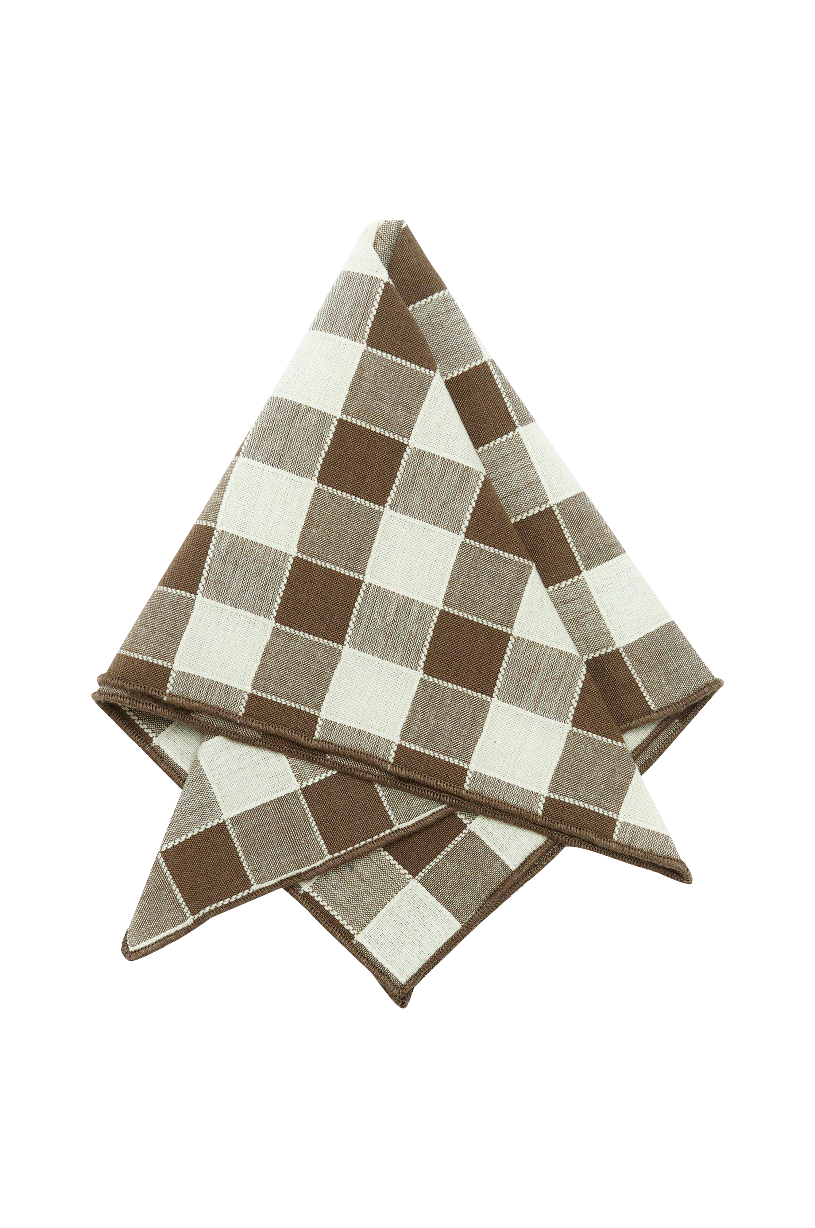 Serviett med garnfarget mønster og søm med overlockkanter. Fordi den er garnfarget er serviettens bakside like fin som forsiden. 100% bomull.