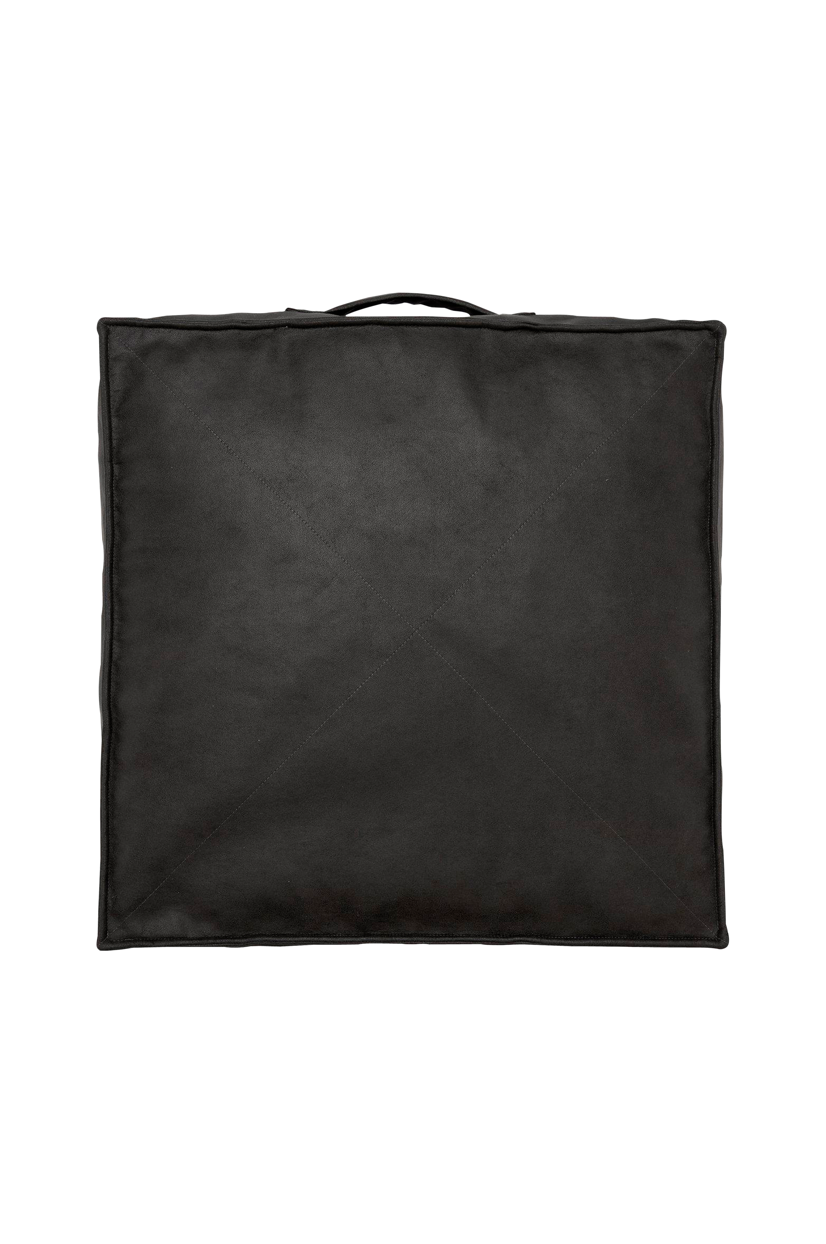 Sittepuff i kunstskinn med håndtak på den ene siden. Sitteputen er fylt med små kuler for økt komfort og funksjon. 100% polyester.
