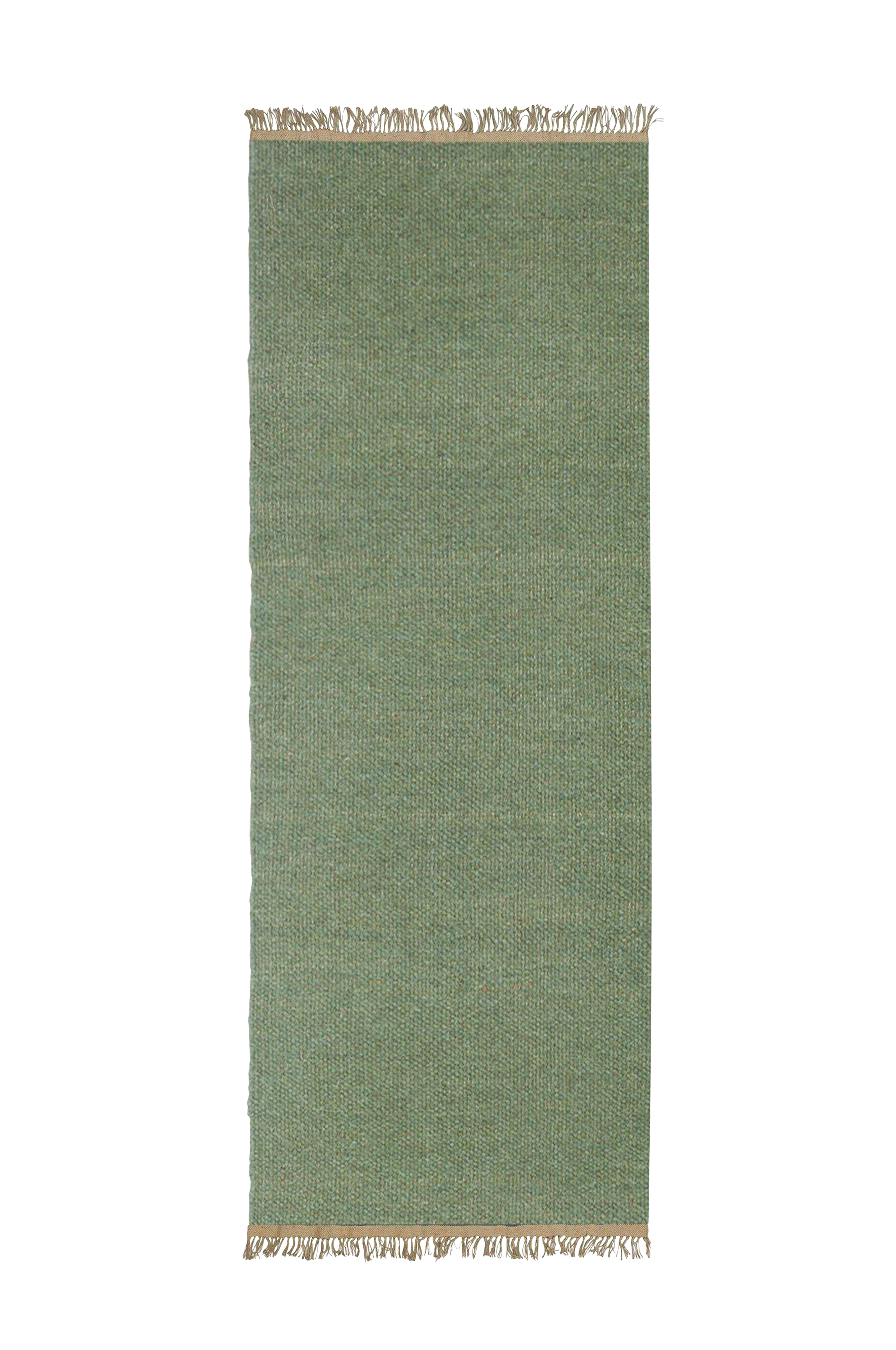 Ian er et tynt glattvevd ullteppe med jutevarp. Fjern eventuelle flekker med en fuktig klut, eller lever til rens. Mål 70x240 cm. Ull har en naturlig smuss- og vannavvisende evne, og egner seg derfor svært godt som teppemateriale. Det kan være bretter på teppet etter frakt, disse forsvinner etter en stund. Teppet er håndlaget, og det kan være små ujevnheter i veven. 75% ull, 25% jute.