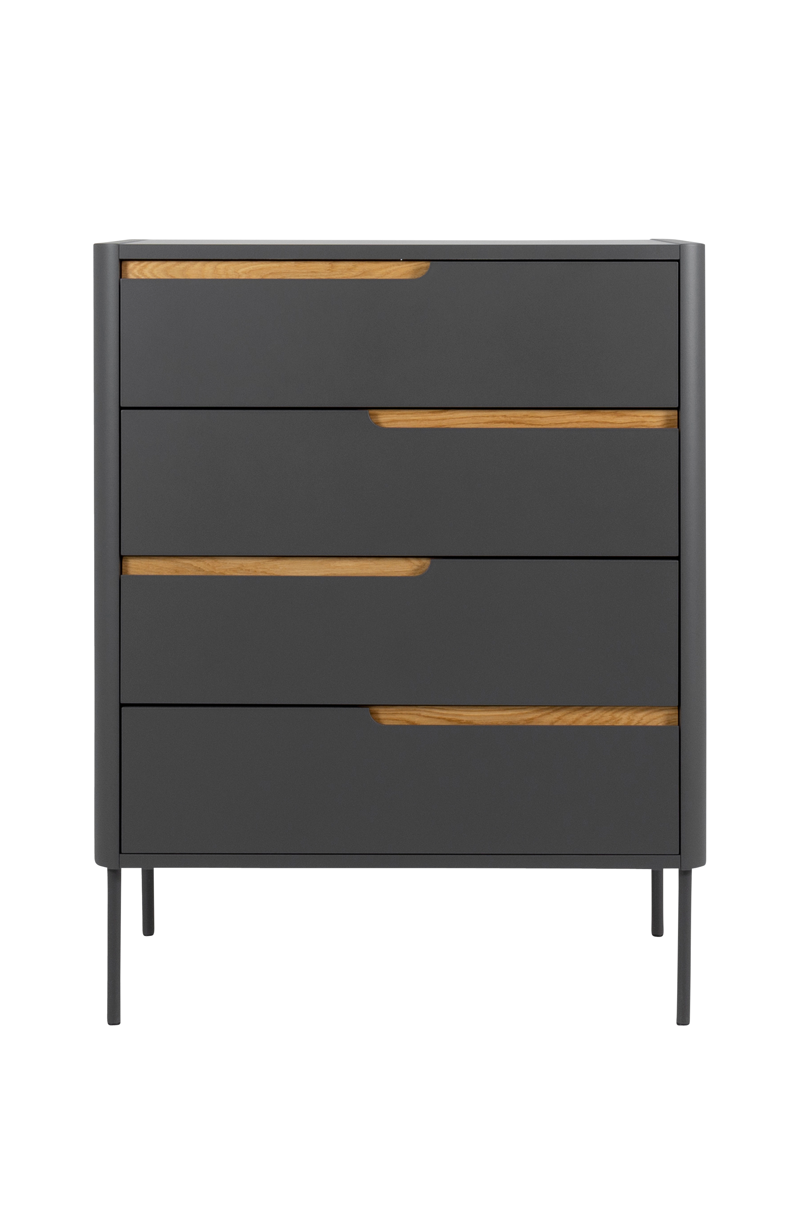 Switch er en kolleksjon minimalistisk designede møbler for det moderne hjemmet. Moderne stylede møbler i klassiske farger kombinerte med elegante asymmetriske håndtak gjør dette til en serie møbler for ethvert hjem. Møblene gjør seg flott i rommet, og gir hjemmet en klassisk, toppmoderne stil. Kommode produsert i Sverige av Tenzo. De 4 skuffene med soft close-fuksjon gir gode oppbevaringsmuligheter.