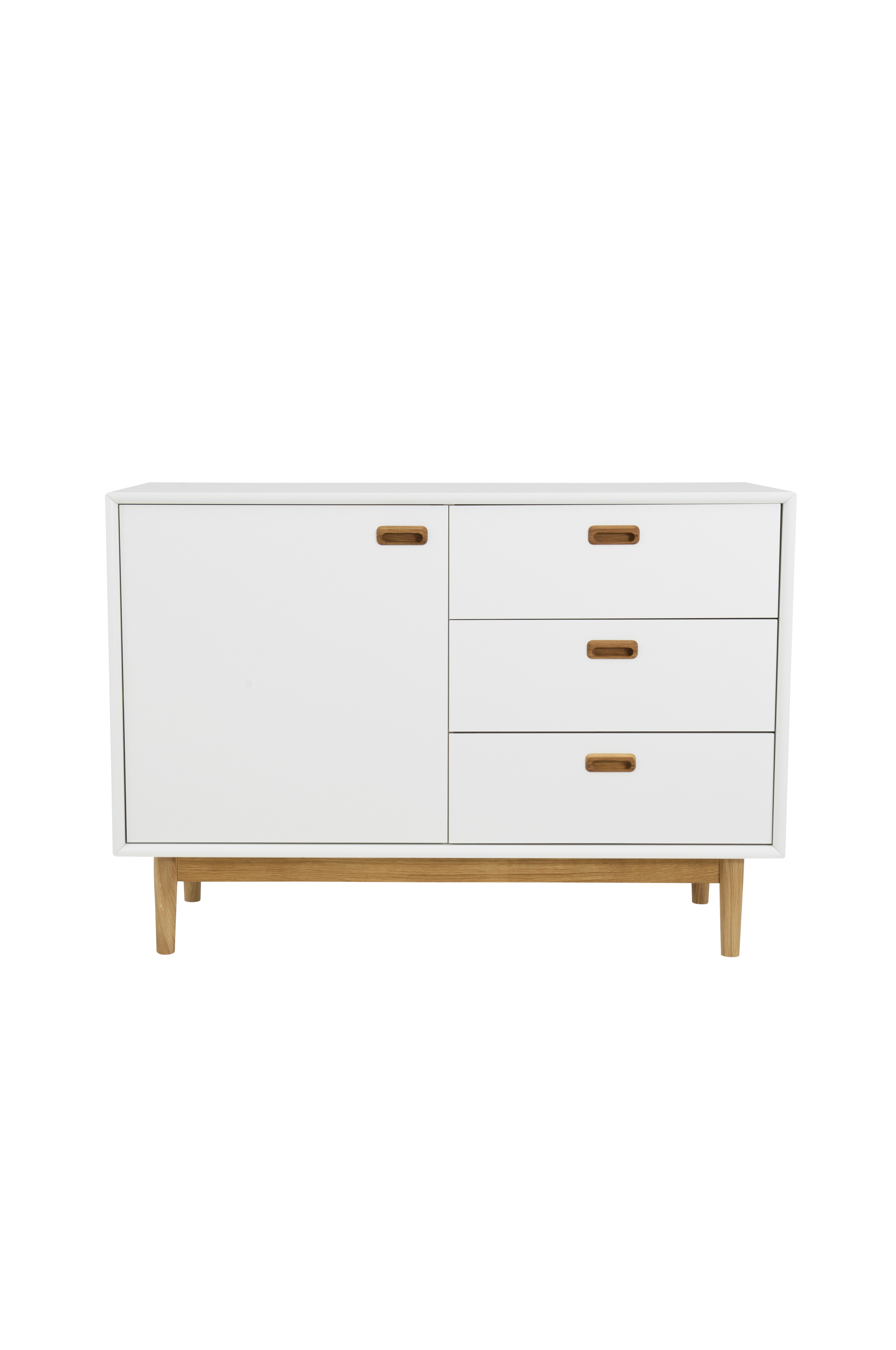 En skandinavisk designer-skjenk i hvit/eik.