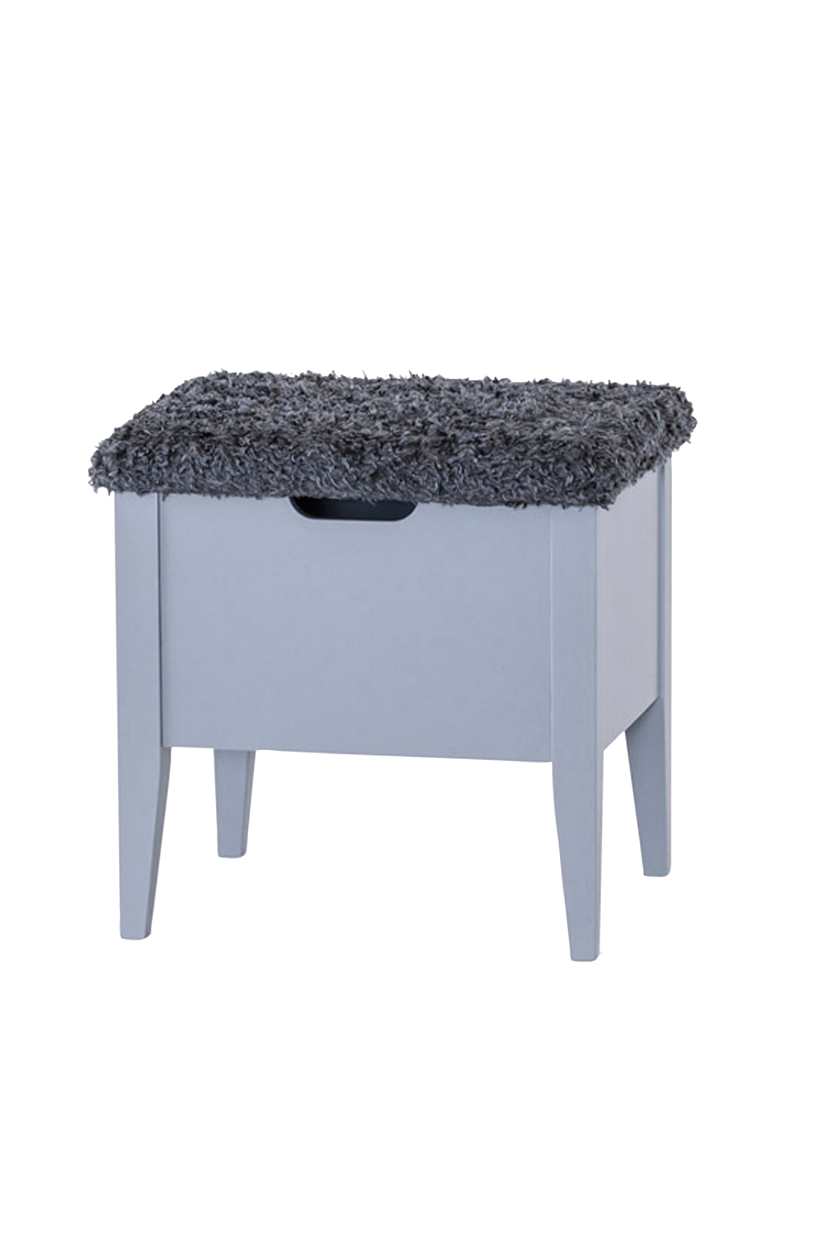 Benk i oljet eik massiv/finér med lokk i sete med ekte saueskinn