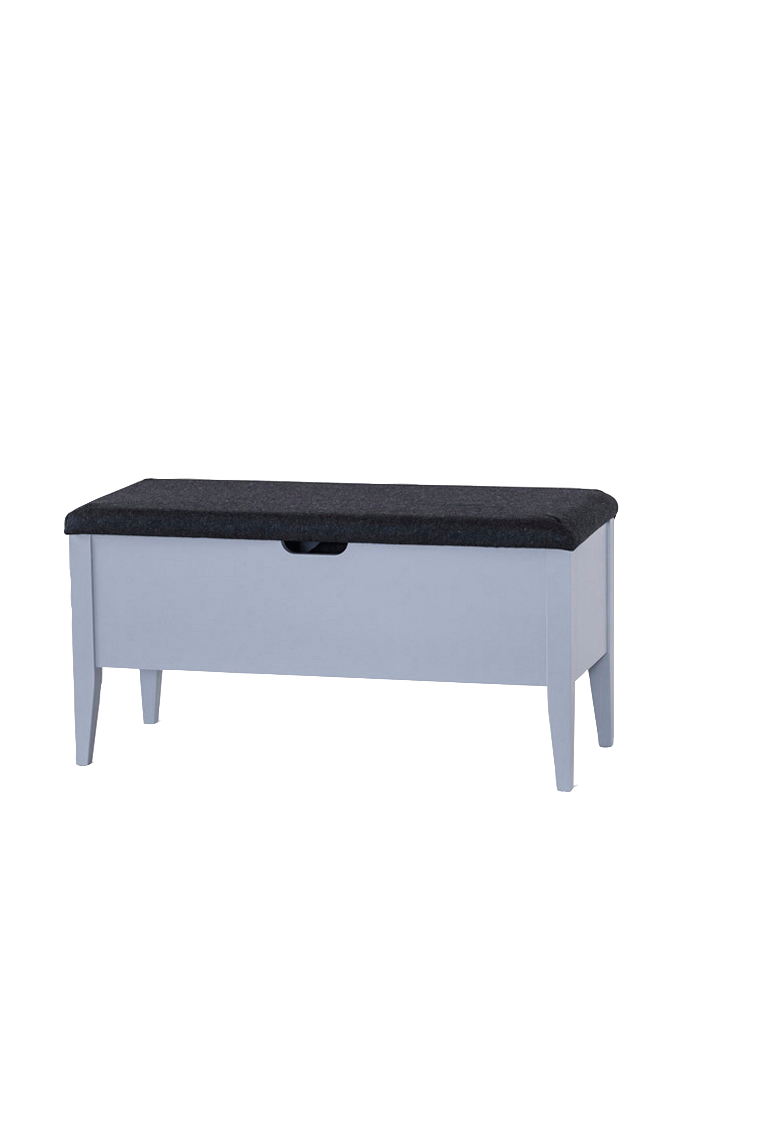 Benk i hvitoljet eik massiv/finér med lokk i sete med ekte saueskinn