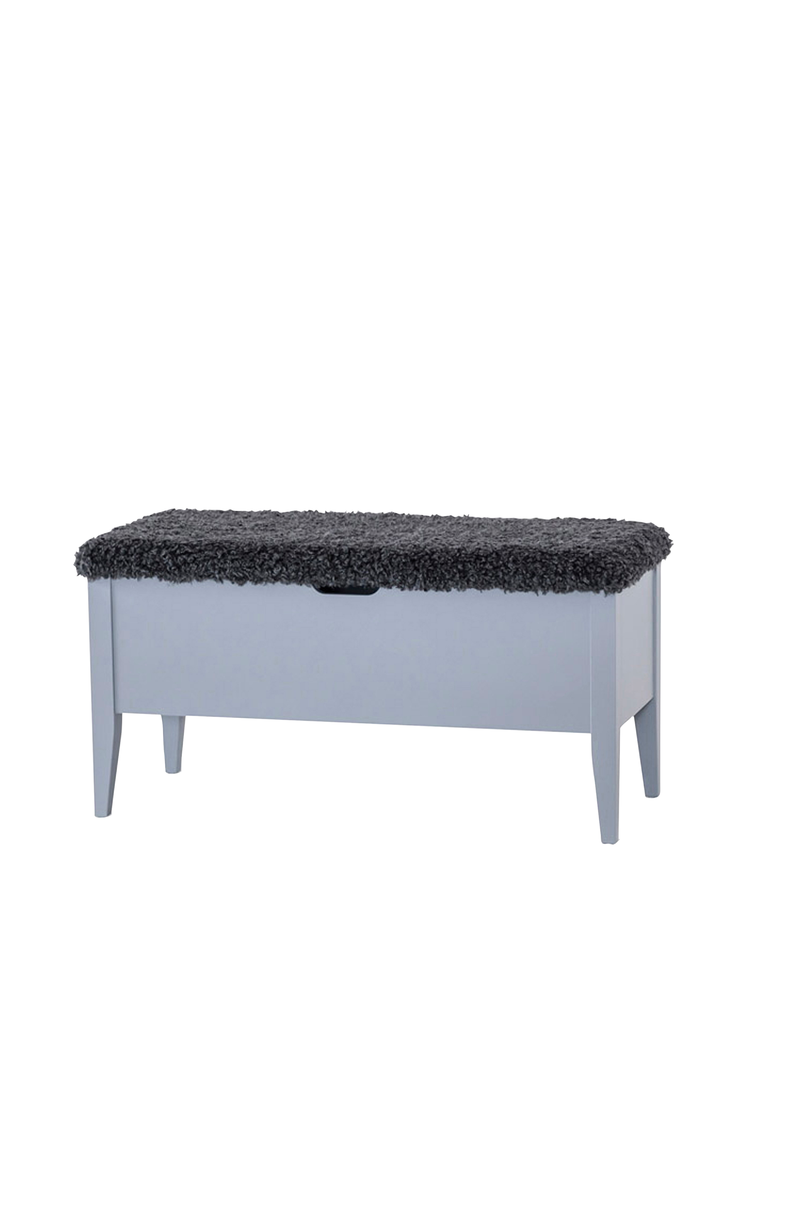 Benk i hvit lakk med lokk i imitert pelsstoff bror