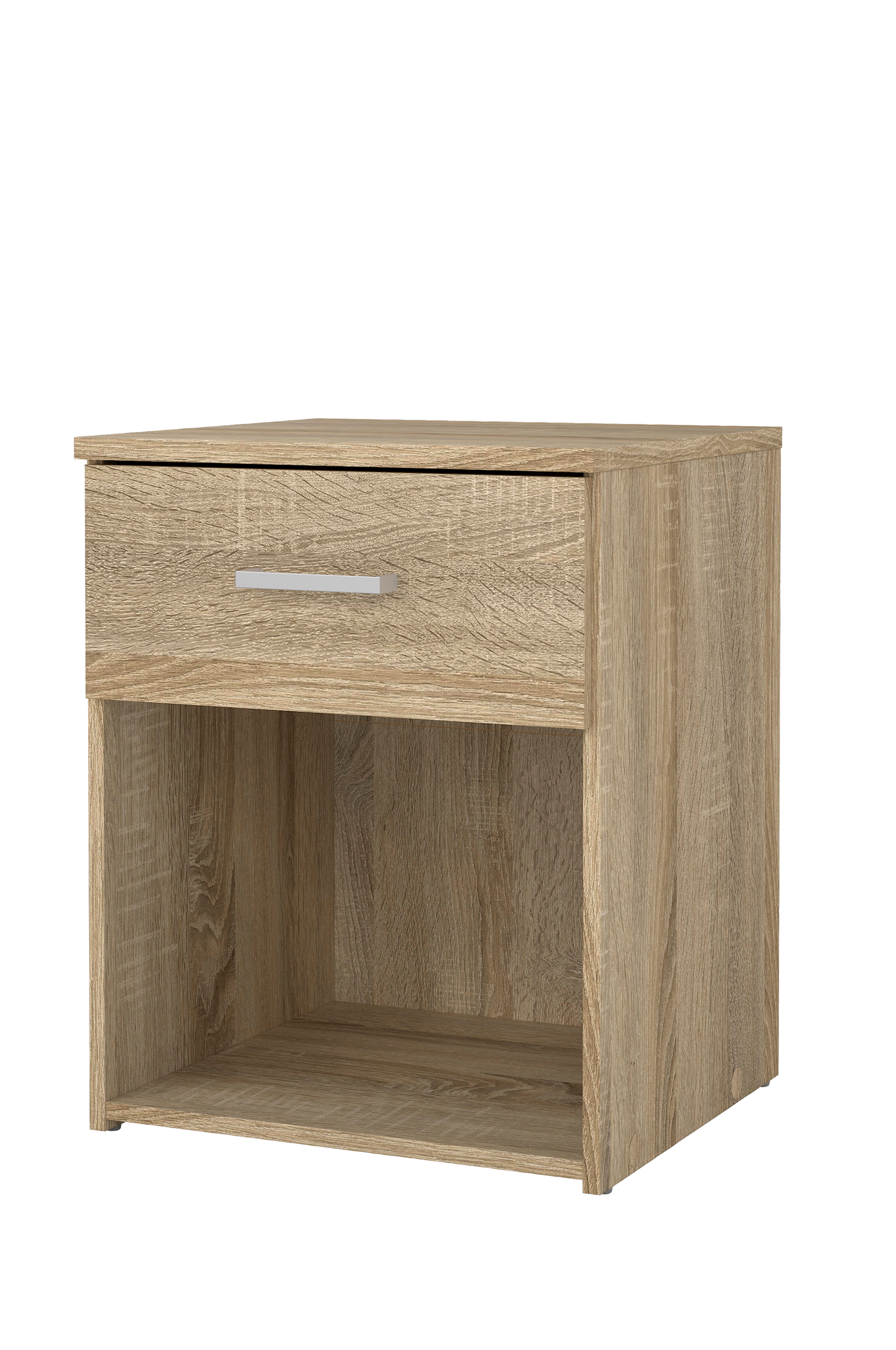 Space nattbord kombinerer praktisk og funksjonell design, med en skuff øverst for oppbevaring av de viktigste tingene og et åpent rom for rask tilgang til ofte brukte gjenstander. Den kompakte designen gjør det til et allsidig tillegg til ethvert rom, og det er både praktisk og stilfullt.