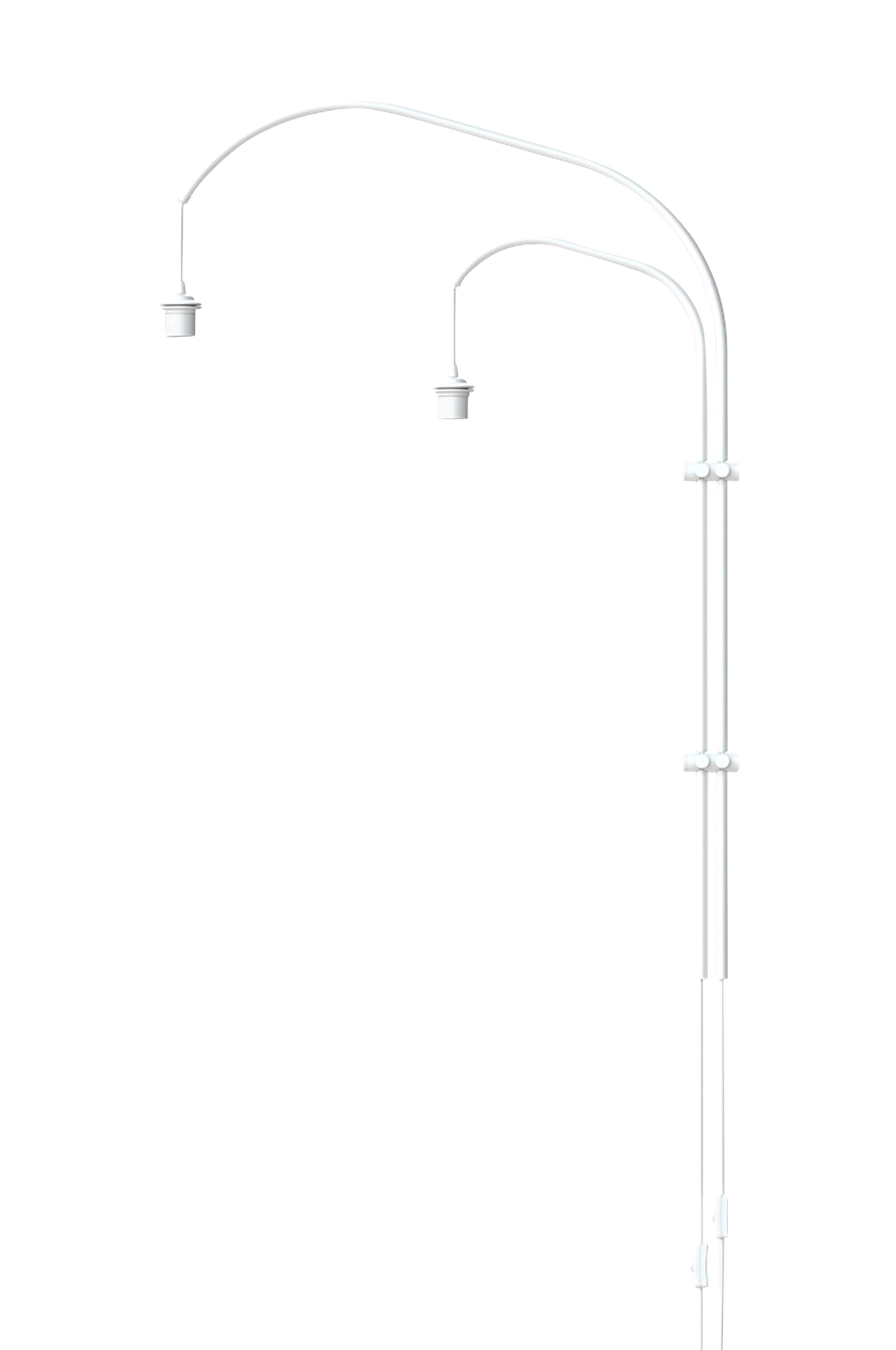 WILLOW veggstativ kan plasseres akkurat der du ønsker uten at du må installere ekstra kontakter på veggen eller i taket. Veggstativet er inspirert av den trolske skjønnheten i piletrær, noe som gjør det til et unikt innslag i interiøret. WILLOW har lekker, minimalistisk design som gir deg muligheten til å selv bestemme hvordan du vil arrangere belysningen. Fungerer med alle slags lampeskjermer. Willow veggstativ dobbel finnes også i hvitt, samt i to varianter for oppheng av kun en lampe.