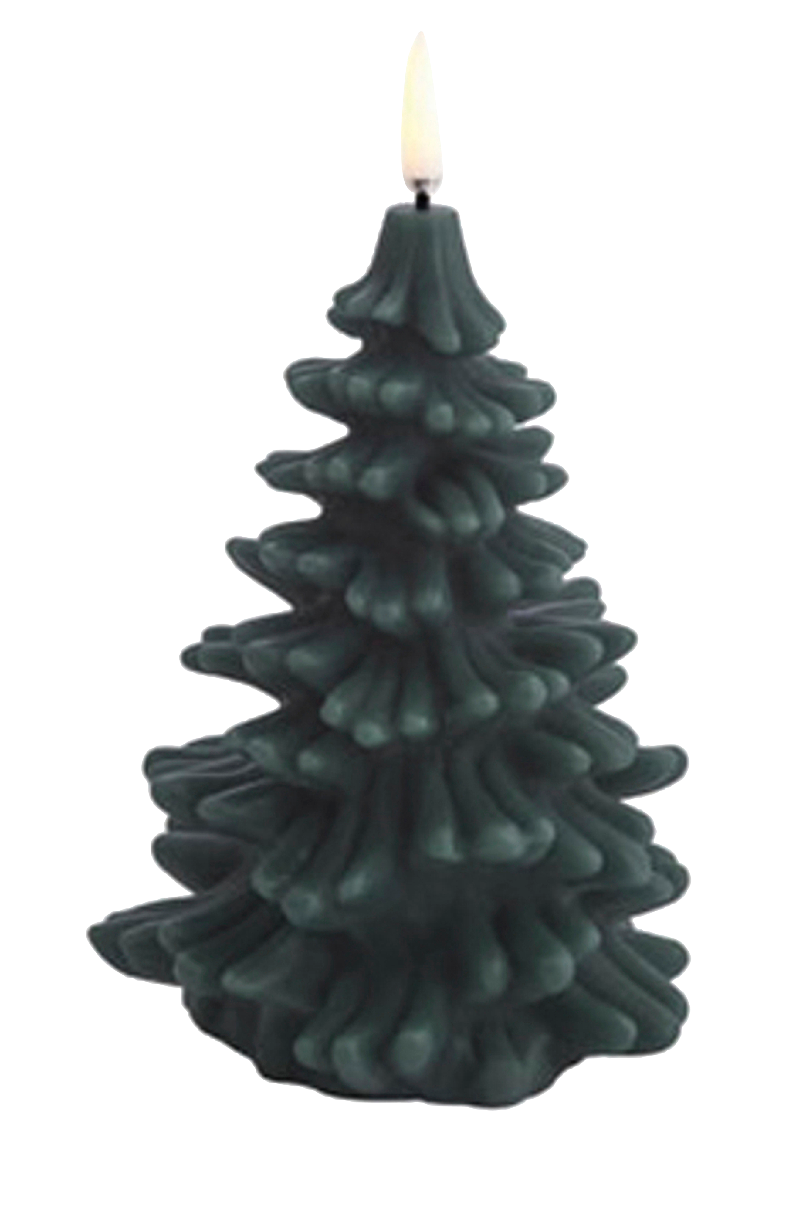LED-lys formet som et vakkert juletre. Den patenterte 3D-flammen gir et svært realistisk inntrykk av en blafrende, varmende flamme.