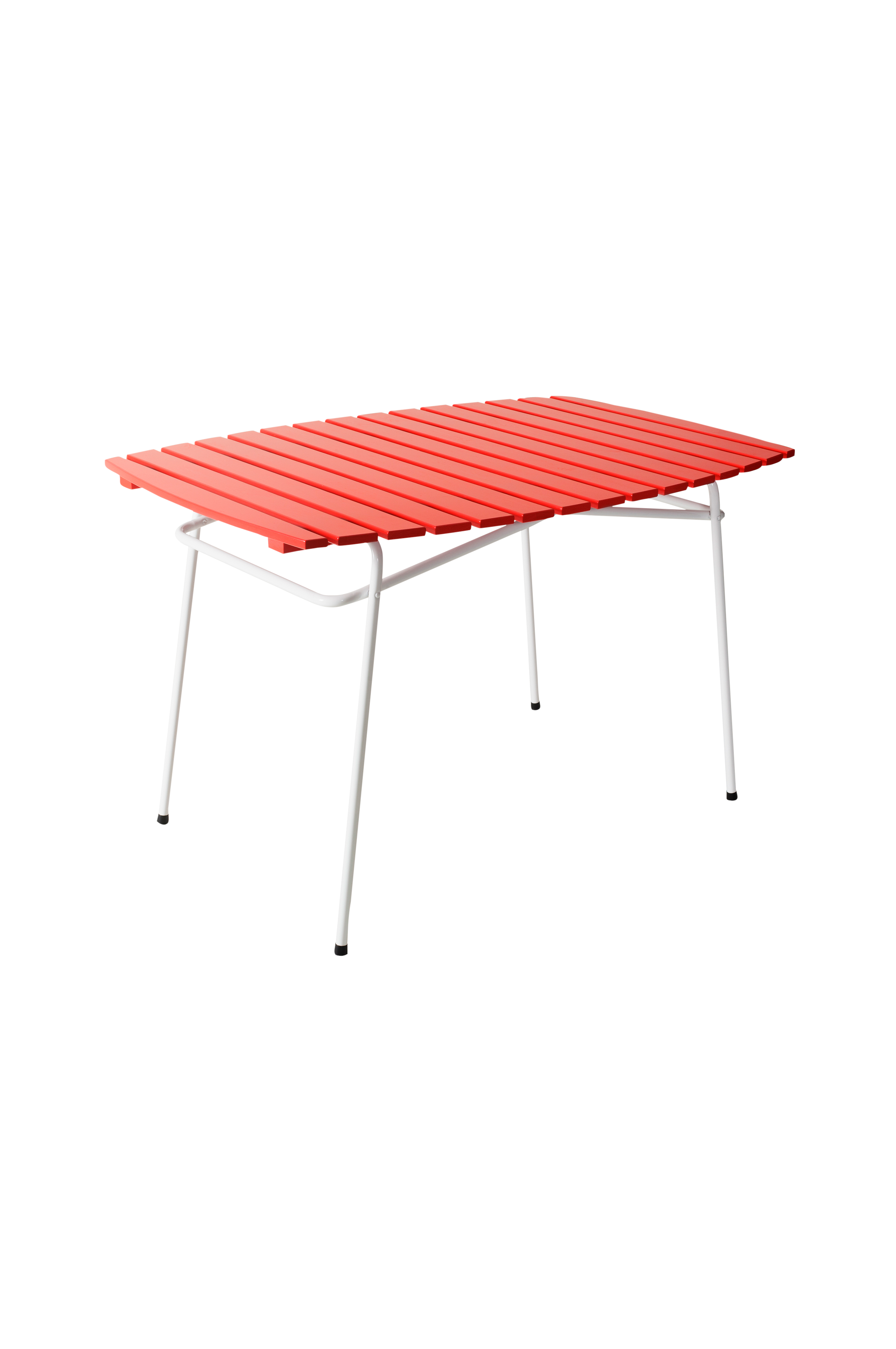 Sammenleggbart bord Retro 403. Hvit pulvermalt stålrørstamme. Bordplate av rødmalt furu.