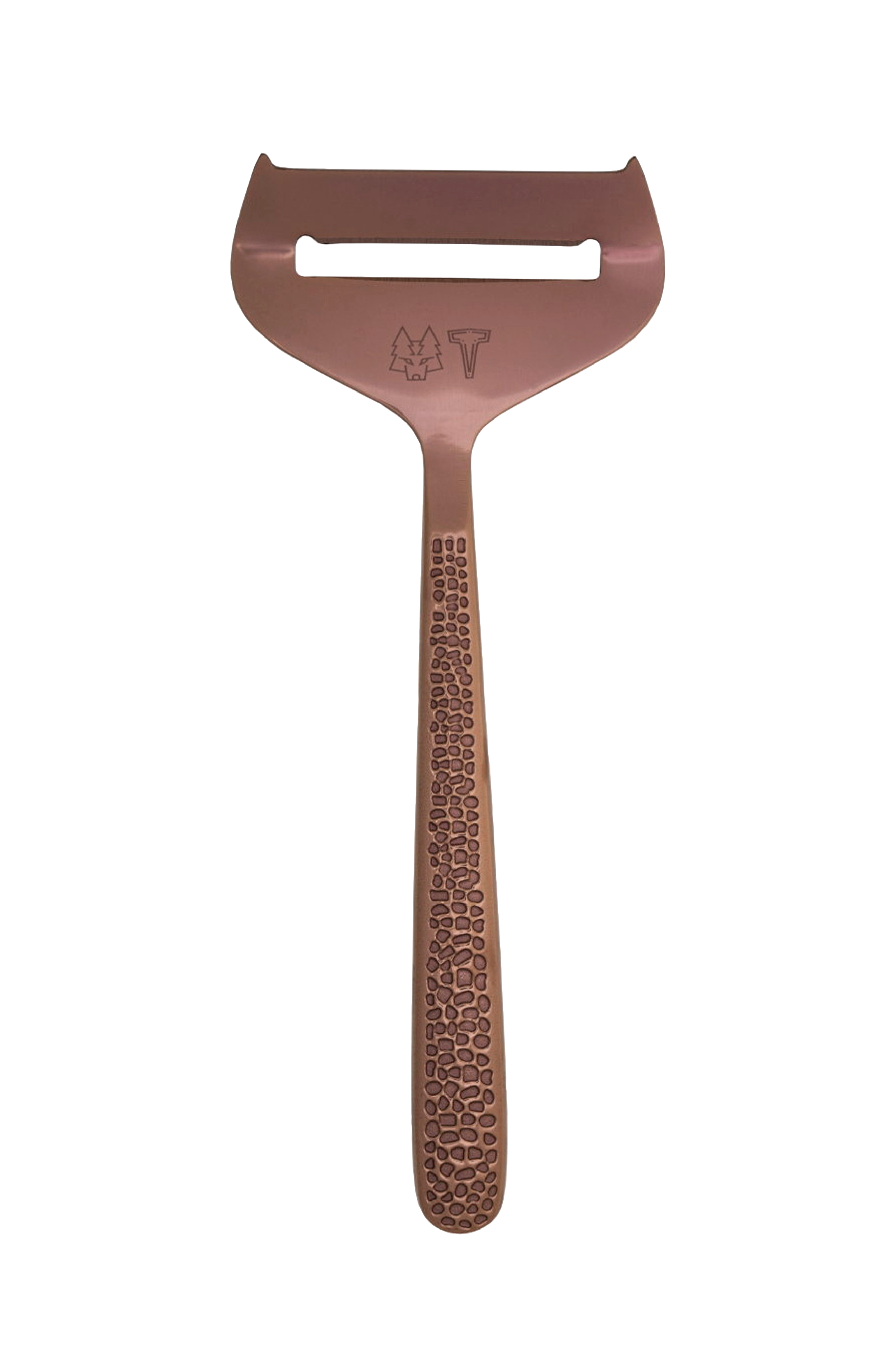 Oppgradert og skarpere enn noensinne. Vargen & Thors egen ostehøvel - helt i stål. Robust følelse og balansert vekt. Håndtak med Vargen & Thors ikoniske hamrede mønster på både for- og baksiden.