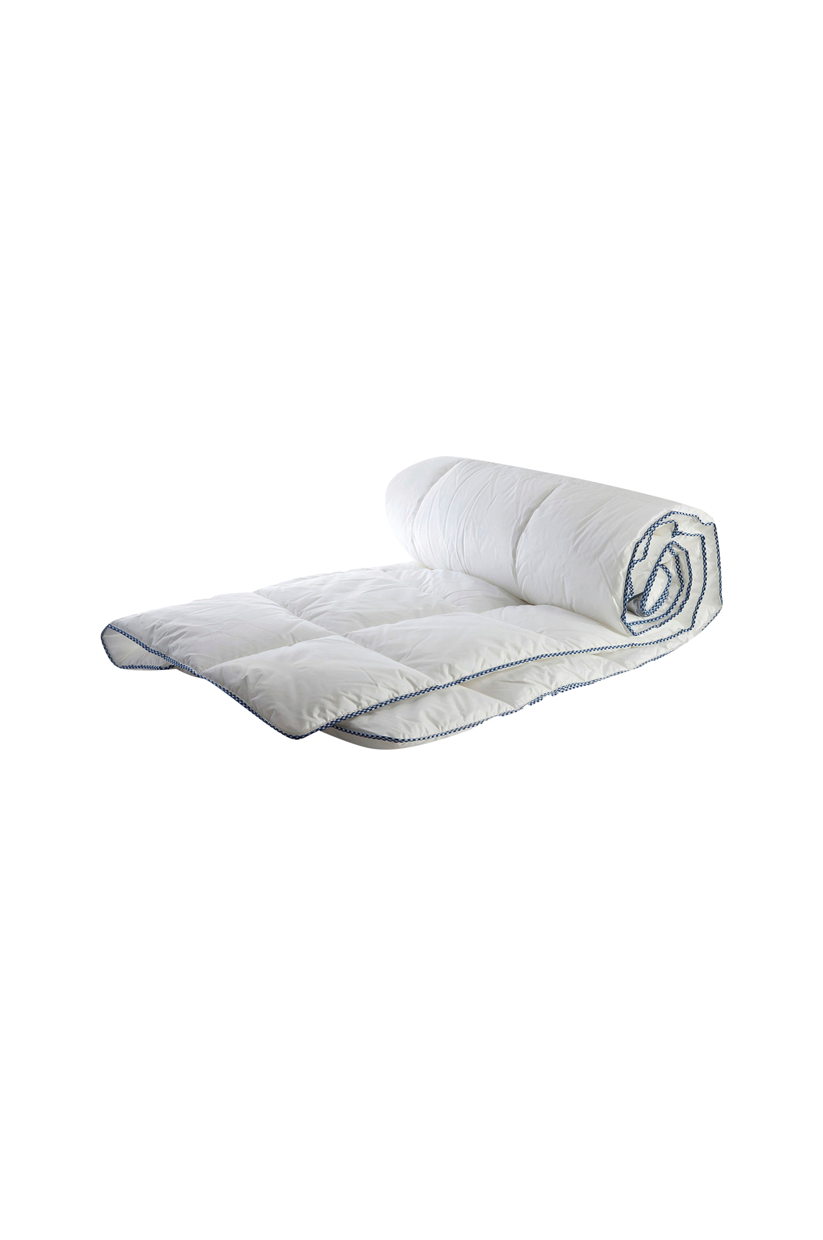Eksklusivt dyne i 100% økologisk bomullscambric. Bomullscambric gir dynen en herlig krisp følelse, akkurat som på hotell. Dynen er stoppet med softfiling, silikonisert polyesterhulfiber av høyeste kvalitet. Polyesterhulfiberens egenskaper gir dynen en uimotståelig isoleringsevne og levetid. Dynen er rutestukket og sydd med blåhvitrutete båndkant.