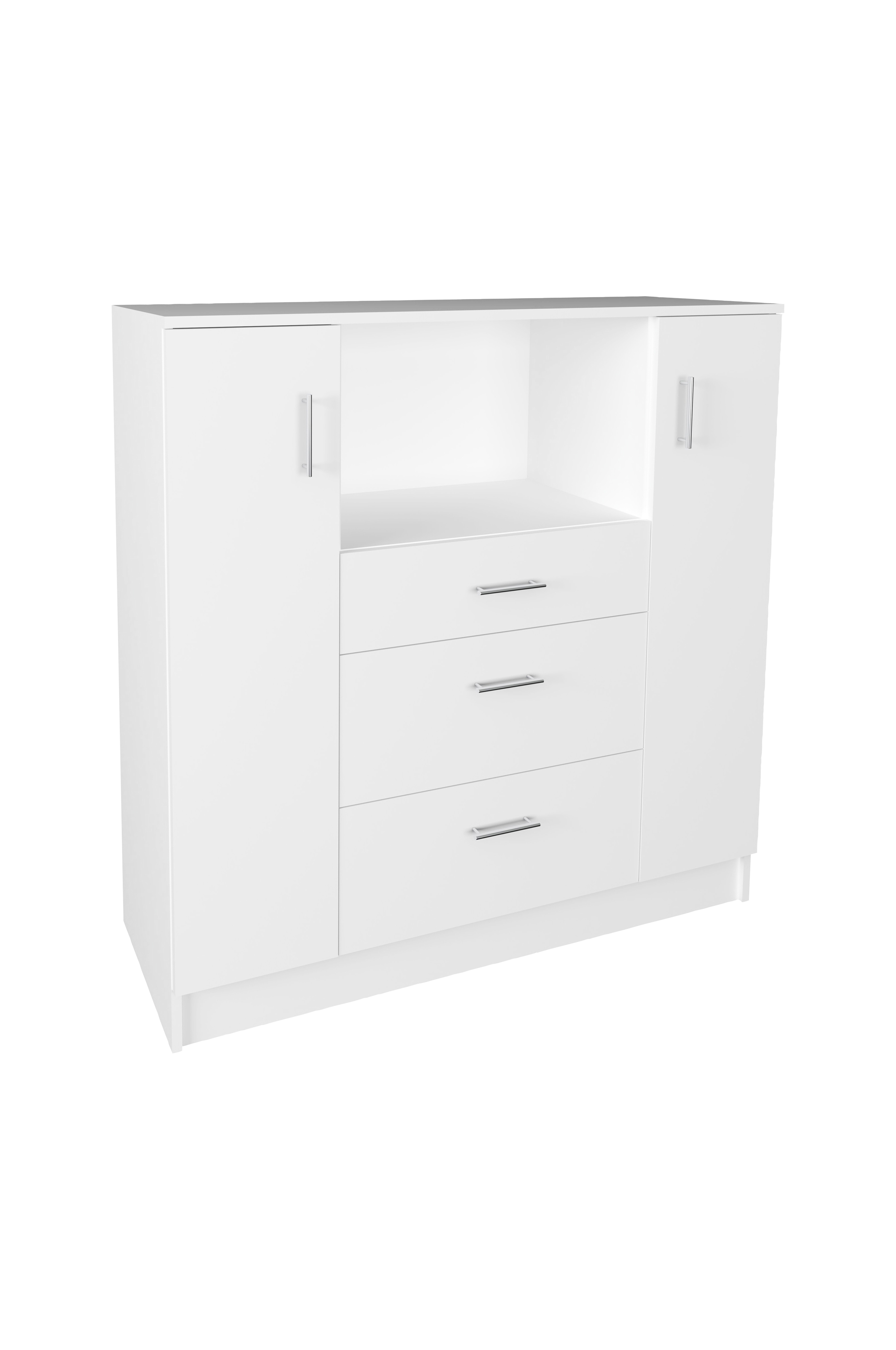 vcm kjøkkenskap med to hengslede dører og tre skuffer er spesielt moderne og tilbyr rikelig med oppbevaringsplass for kjøkkenredskaper. Korpusen er 16 mm tykk og derfor spesielt robust.