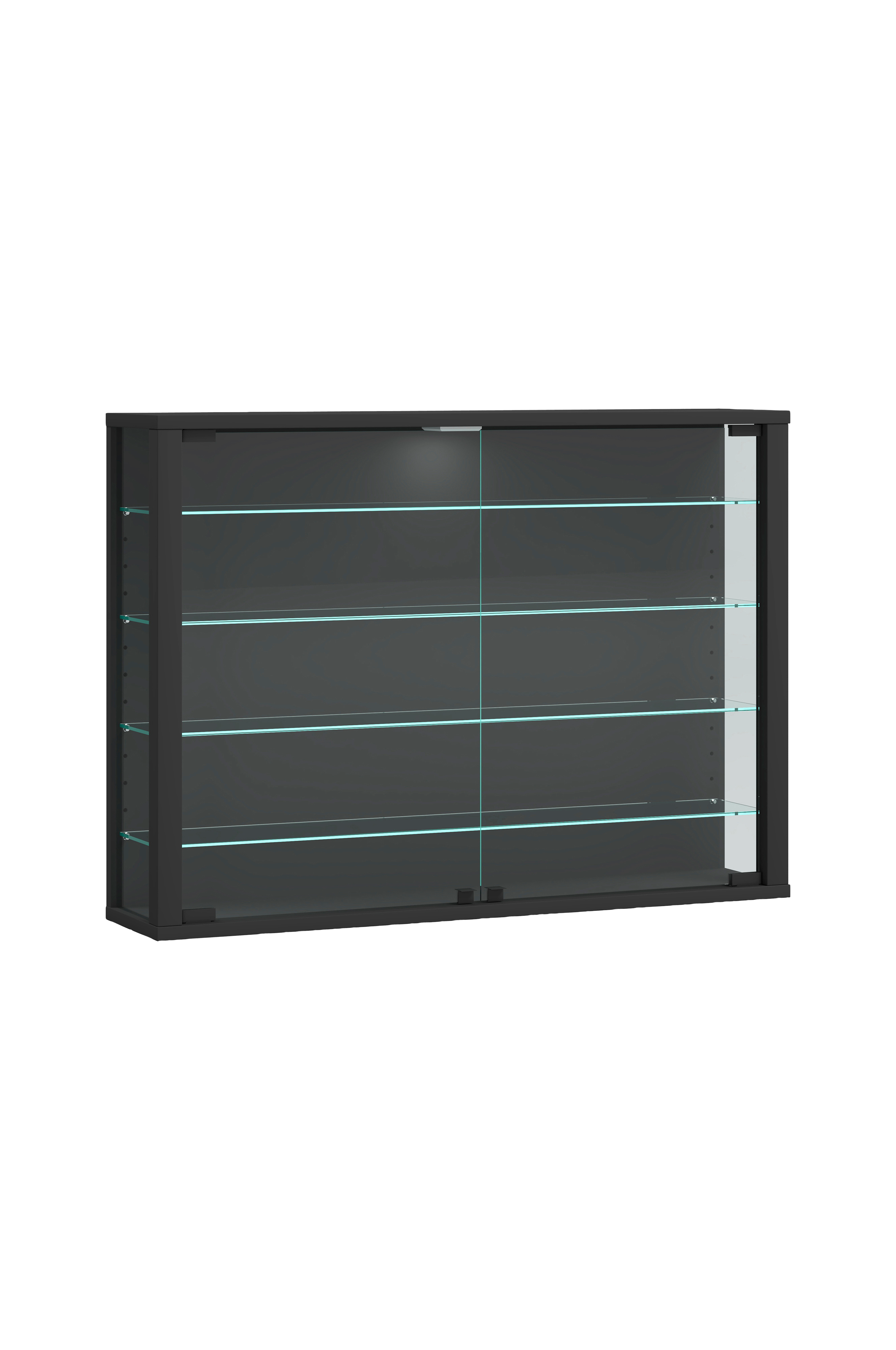 Designeren har brukt robuste trebaserte materialer til kroppen. Dørene er laget av herdet sikkerhetsglass, som gir økt slag- og støtmotstand. Vitrineskapet forvandler enhver vegg til et absolutt blikkfang.
