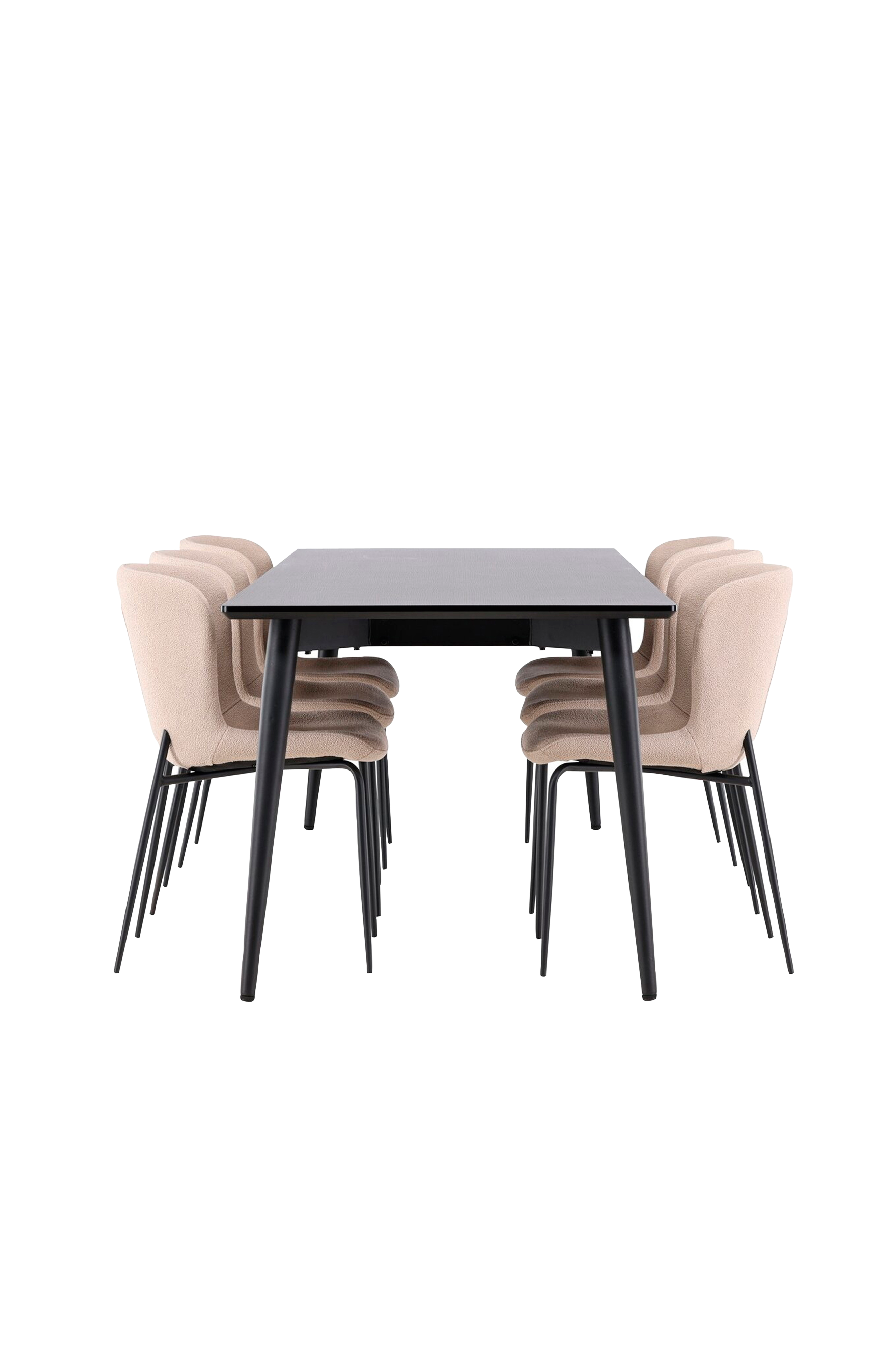 Oppdag det perfekte spisesettet med spisestolen Modesto og spisebordet Ellis - en kombinasjon som utstråler både eleganse og robusthet i hjemmet ditt. Modesto er vår populære spisestuestol som er like trendy som den er komfortabel. Skap en innbydende atmosfære i hjertet av hjemmet ditt med denne myke spisestolen i skandinavisk design. Stolen er helpolstret i luftig stoff med slanke, smale stolben i metall. Den lett avrundede ryggen og den polstrede sitteputen gir ekstra komfort og forlenger hyggelige måltider rundt spisebordet. Det skal føles godt å sette seg ned til et deilig måltid! Utforsk ellis, det robuste spisebordet som vil bli navet i spisemiljøet ditt. Med sitt elegante og moderne uttrykk tilfører ellis raffinement til rommet ditt. Bordet er laget med stålben og en bordplate i mdf, noe som gir en perfekt balanse mellom robusthet og stil. Med sine generøse mål på 230 x 85 cm er ellis-bordet perfekt for sosiale middager og sammenkomster med venner og familie. Gi spisestuen din en oppdatert følelse av eleganse og stil med modesto spisestol og ellis spisebord. Dette spisestuesettet skaper en trendy og stilfull atmosfære og tilbyr en balanse mellom tidløs design og moderne detaljer, noe som gjør det til det perfekte valget for både hverdagsmiddager og festlige anledninger.