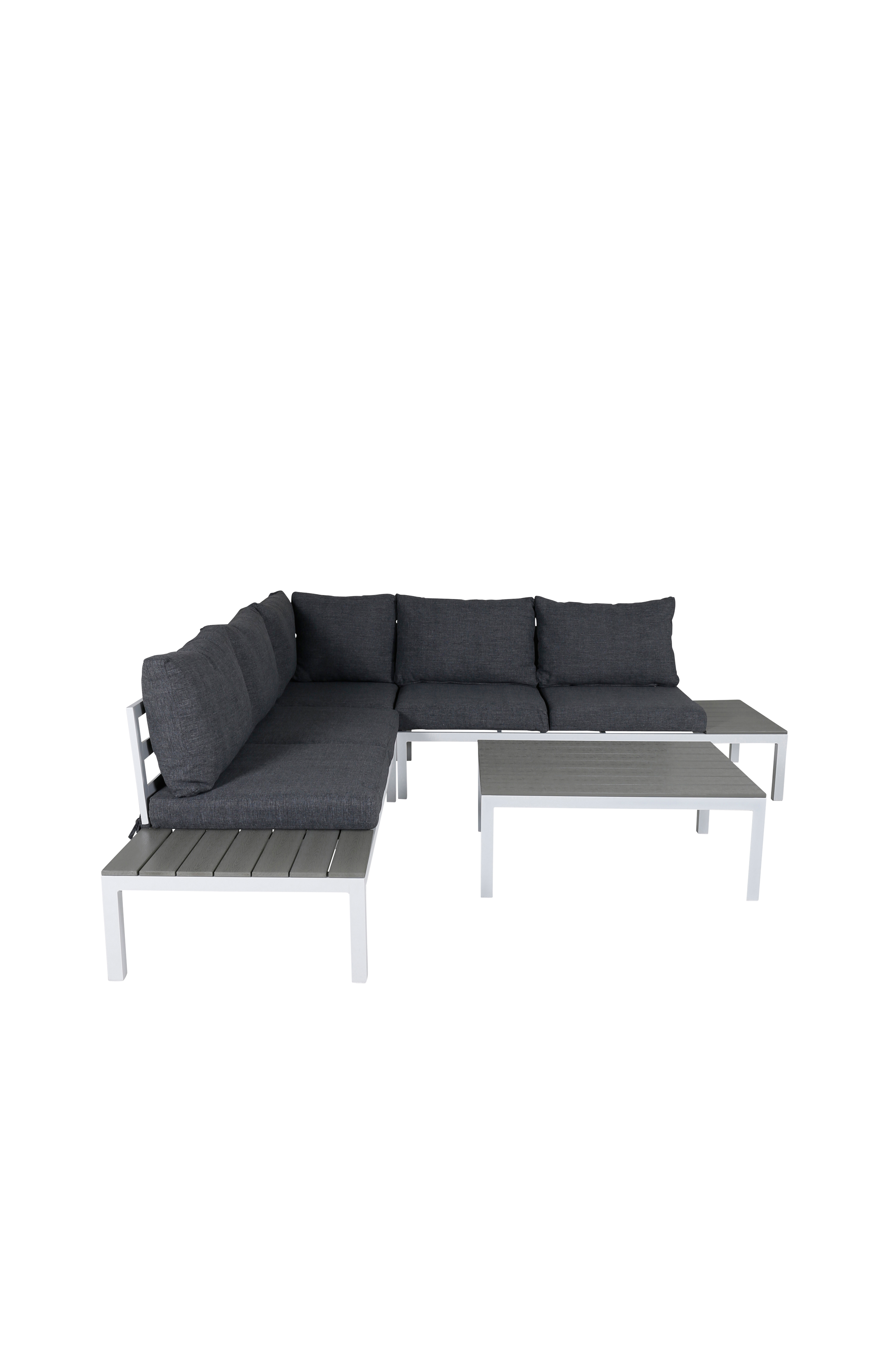 Stilren, smart og slitesterk - en perfekt sofagruppe til uteområdet i sommer! Odense er en klassisk og enkel hjørnegruppe i lekker loungedesign med stamme i aluminium. På hver side av sofaen er det små "sidebord", perfekt for ekstra avlastningsflate. Sofagruppen egner seg for utendørs bruk, og passer like fint ute i hagen som i hjørnet på terrassen. Puter inkludert. Det gjør gruppen like pen som komfortabel!