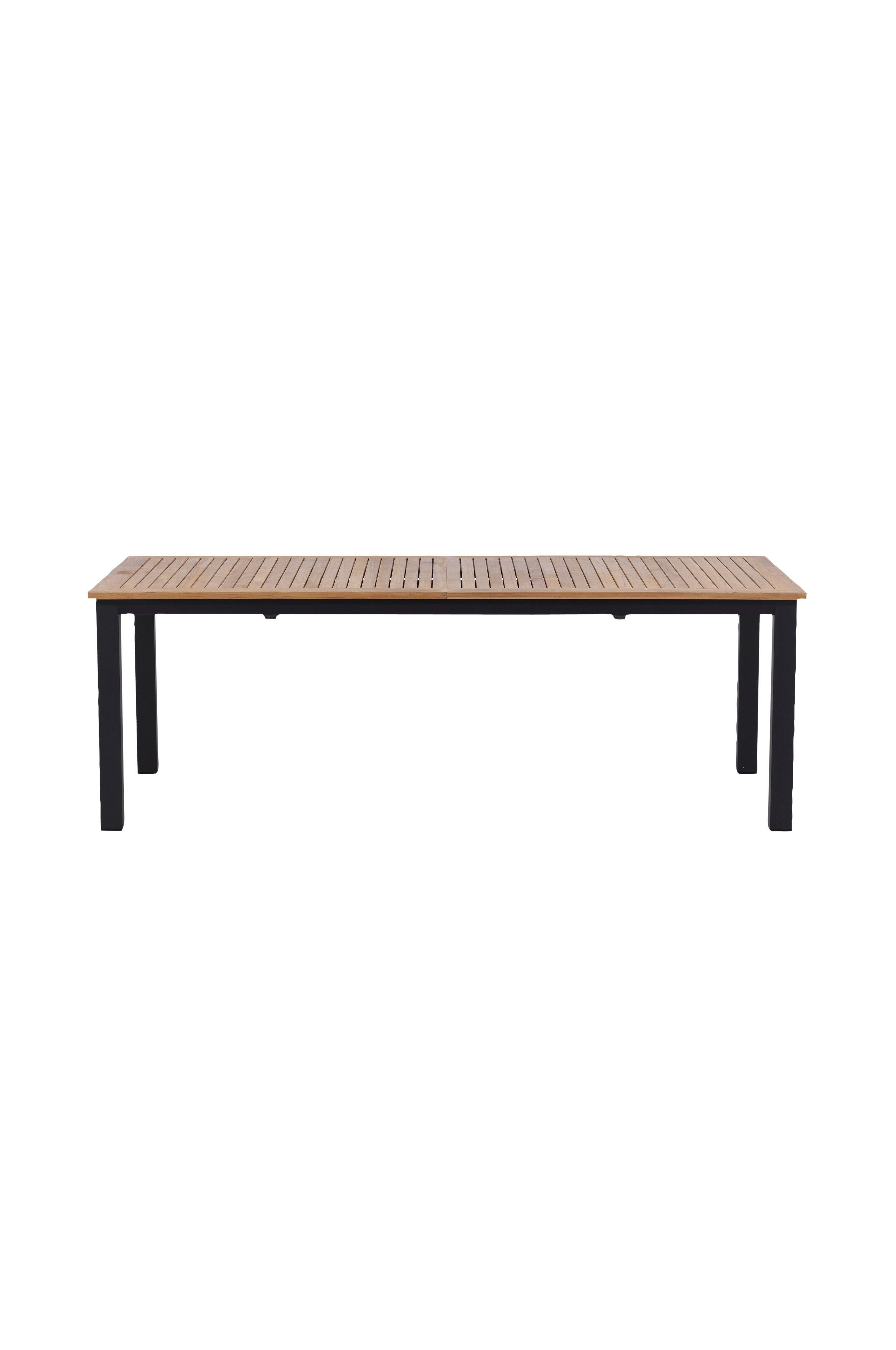 Et eksklusivt spisebord i aluminium med bordplate i massiv teak.
