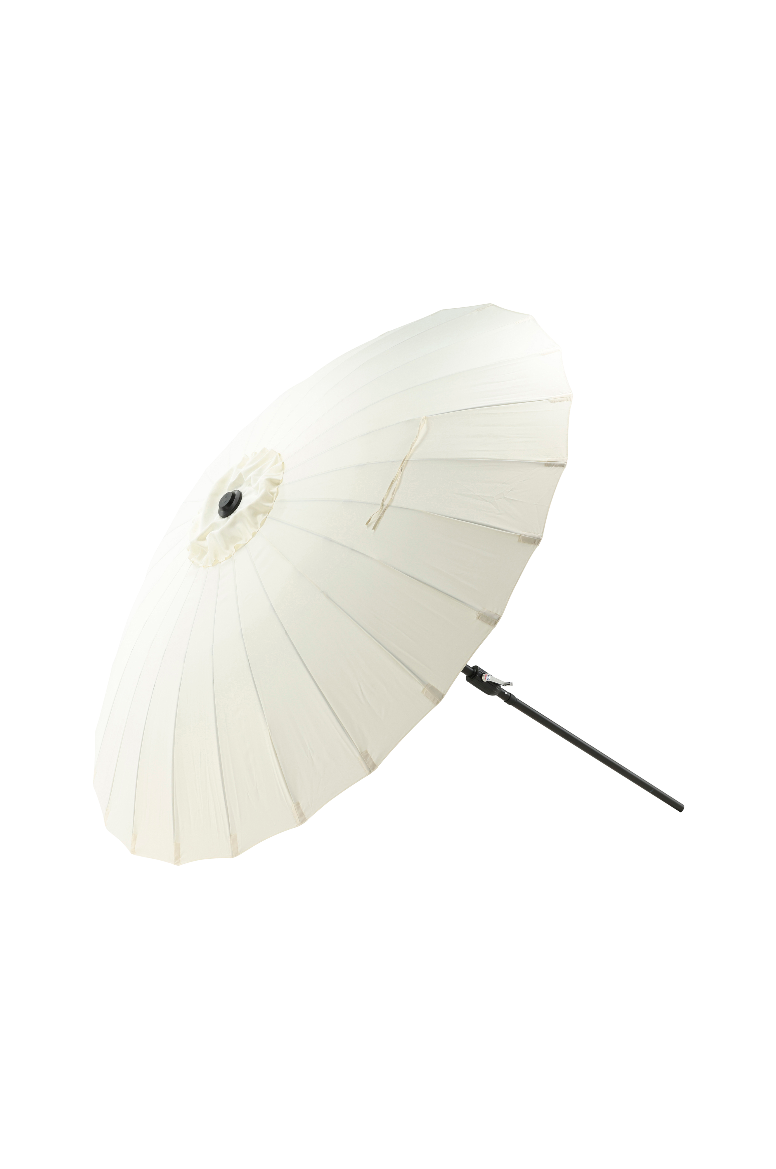 Palmetto parasoll i polyester med stamme i tre. Leveres uten fot. Mål: Diameter: 270 cm. Høyde: 249 cm.