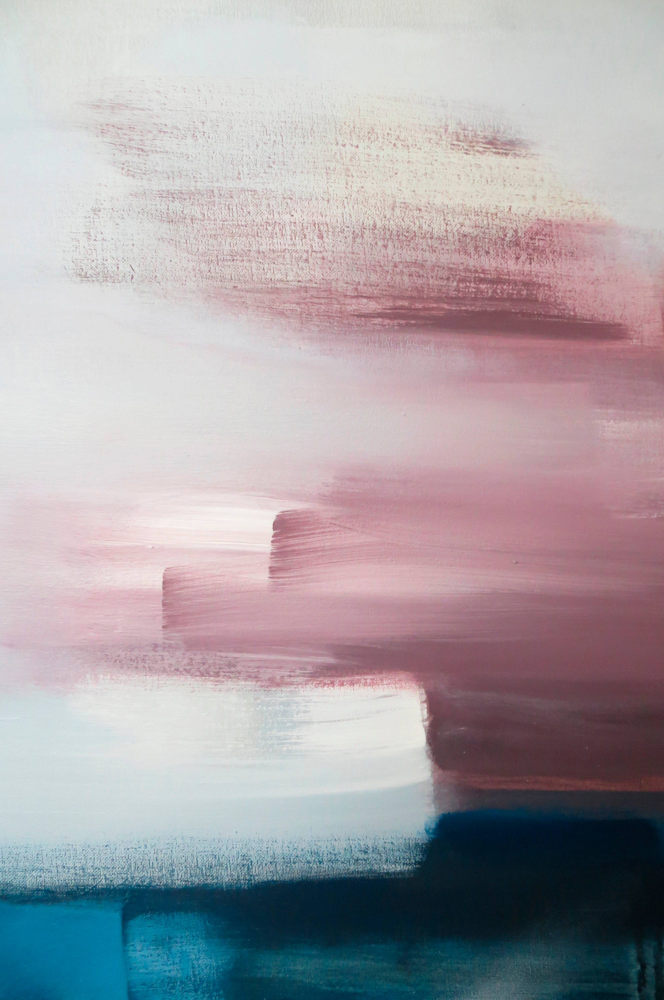 Abstrakt poster i smakfulle, myke farger som gir rommet dybde! Posteren "Dihin" illustrerer abstrakte penselstrøk i skiftende farger av lilla, hvitt, blått og gull. Match med en av våre andre populære postere, så får du en hel bildevegg å pynte opp med.