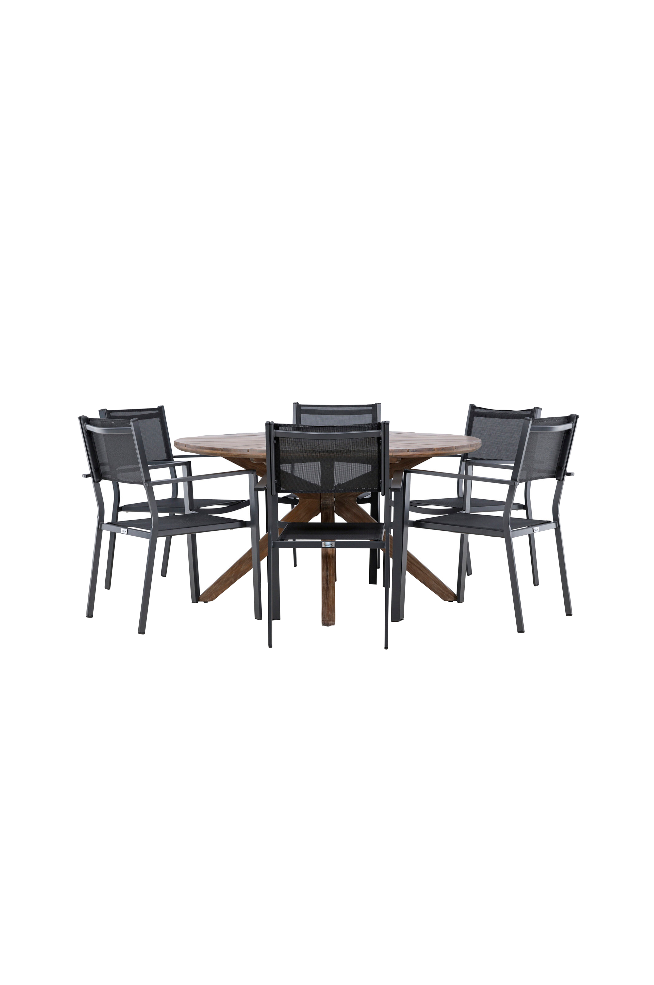 Oppdag den perfekte harmonien mellom modernitet og en varm atmosfære med spisestuesettet, komplett med seks copacabana stoler og det elegante bordet rosario. Dette imponerende ensemblet er perfekt for å skape en innbydende atmosfære utendørs.