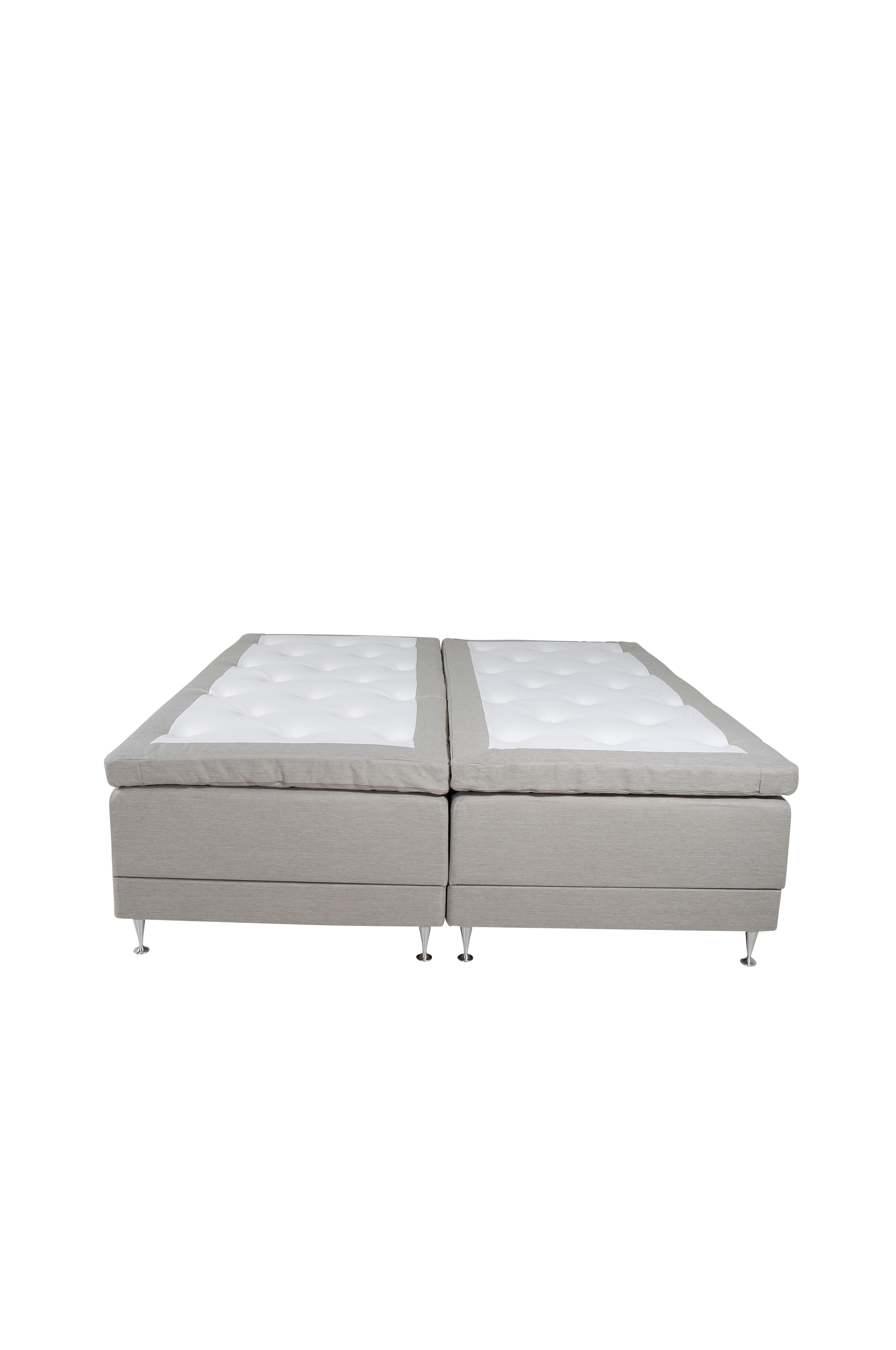 Alt i alt er sengen oppbygd for å gi deilig sovekomfort, samt et enhetlig inntrykk i sitt helkledde design. Hele sengen hviler på 12 cm høye ben i aluminium. Mål: Lengde: 200 cm. Bredde: 180 cm. Høyde: 51 cm. Noe montering kreves. 10 år på ramme og fjærbrudd. Sengegavl kan kjøpes separat.
