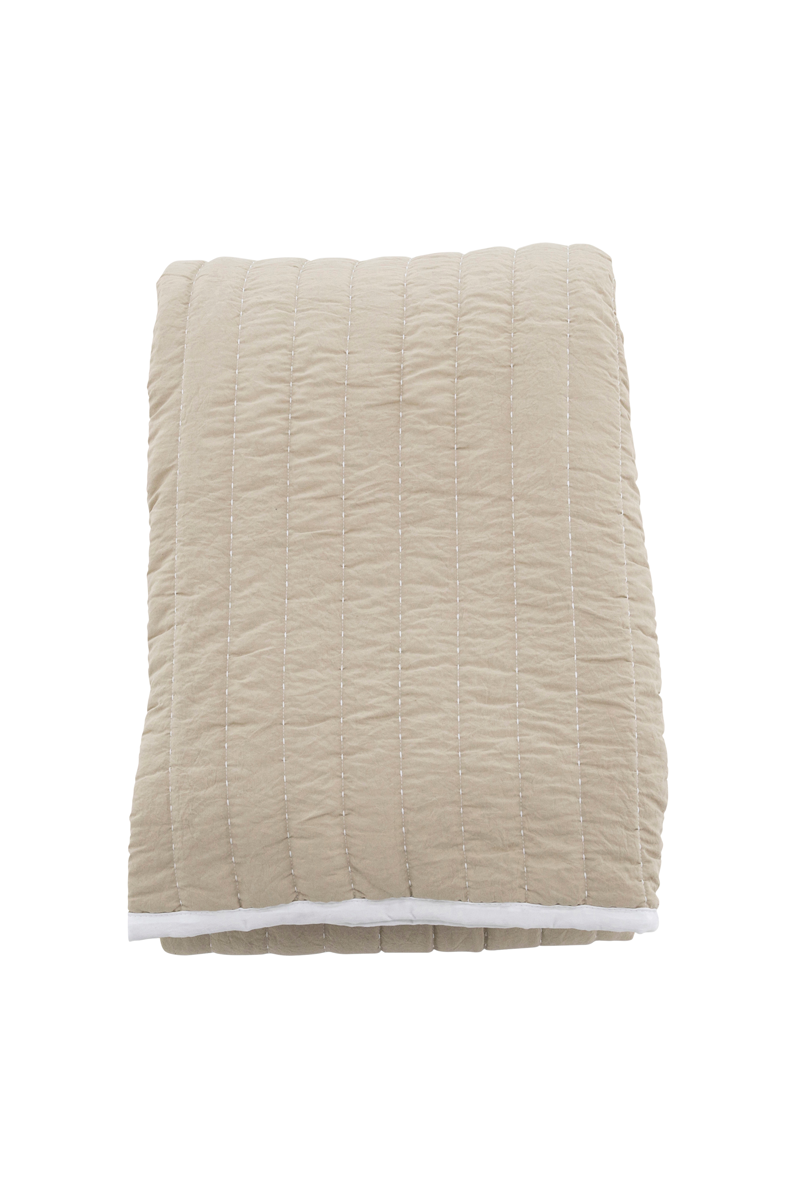 Med sengeteppet Juni blir oppredningen koselig og moderne med en smygende følelse av farge på soverommet. Enkelt å kombinere med annen tekstil og innredning for å skape en lun og koselig følelse. Juni er et quiltet sengeteppe av myk polyester som legger seg pent på sengen ved oppredning, og har målene 260x260 cm. Ved eventuelle flekker anbefaler vi å bruke flekkfjerning og lufte for å forlenge og bevare levetiden på tekstilet. Vi anbefaler å vaske sengeteppet i maskin på 40 °C.