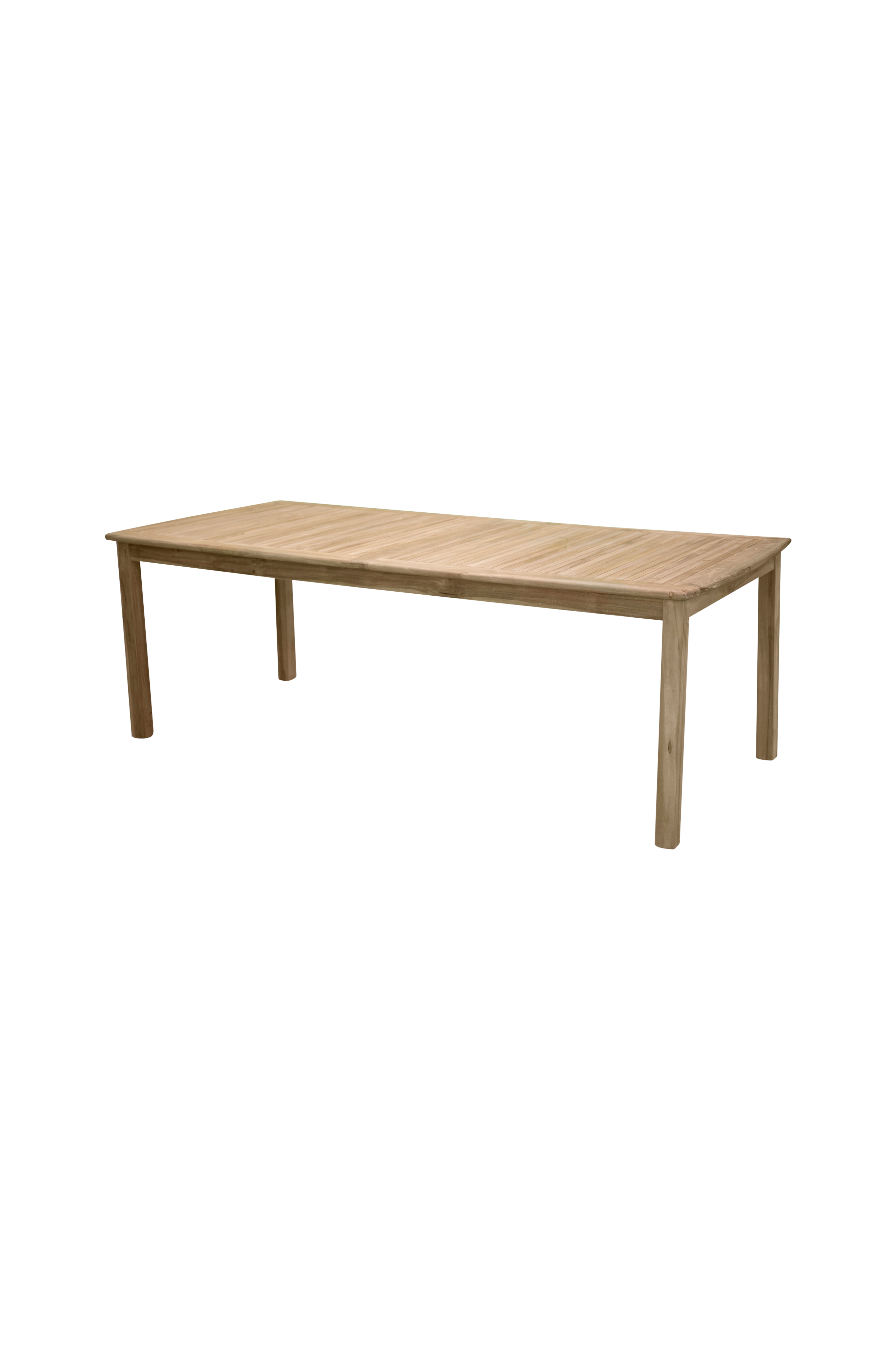 Kaspian spisebord i teak og i en rektangulær form. Mål bord: Lengde: 220 cm. Bredde: 100 cm. Høyde: 75 cm. Krever enklere montering.