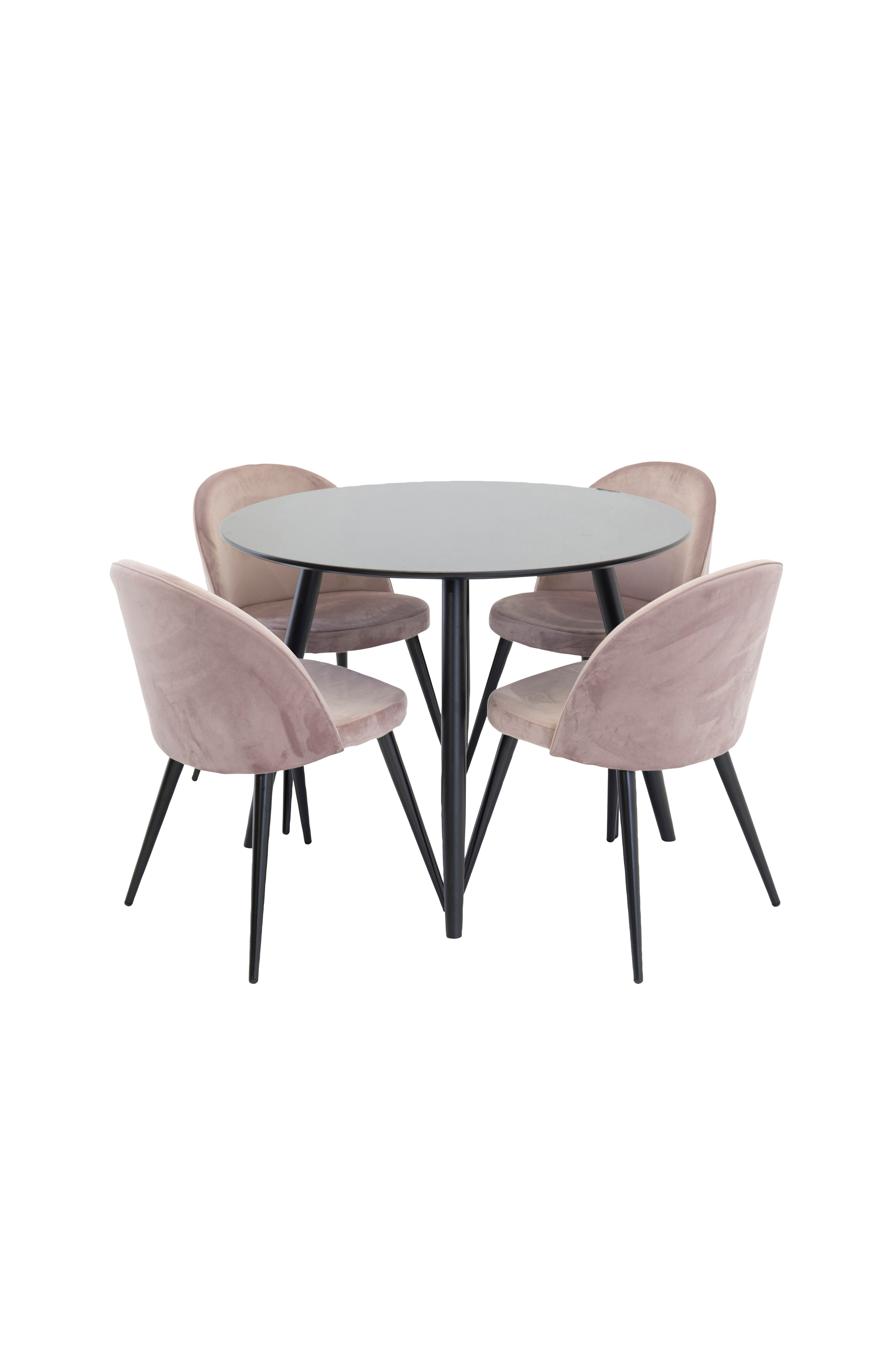 Å kombinere forskjellige farger og materialer gjør alt som regel stor suksess! Her kombinerer vi det runde spisebordet plaza sammen med de deilige spisestuestolene i fløyel. Gled deg til mange middagsinvitasjoner i fremtiden hos din nye matgruppe.