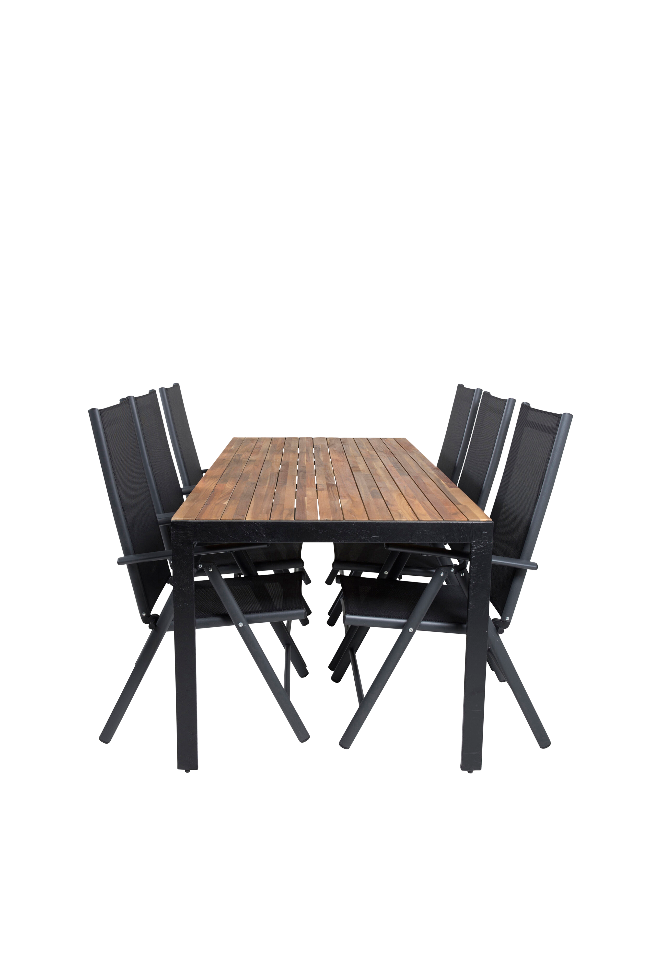 Bois spisebord i aluminiumkonstruksjon med lekker bordplate i akasie. Her sammen med Venture Designs 5-posisjonsstoler Break. Gjør plass for lange og behagelige sommermiddager!