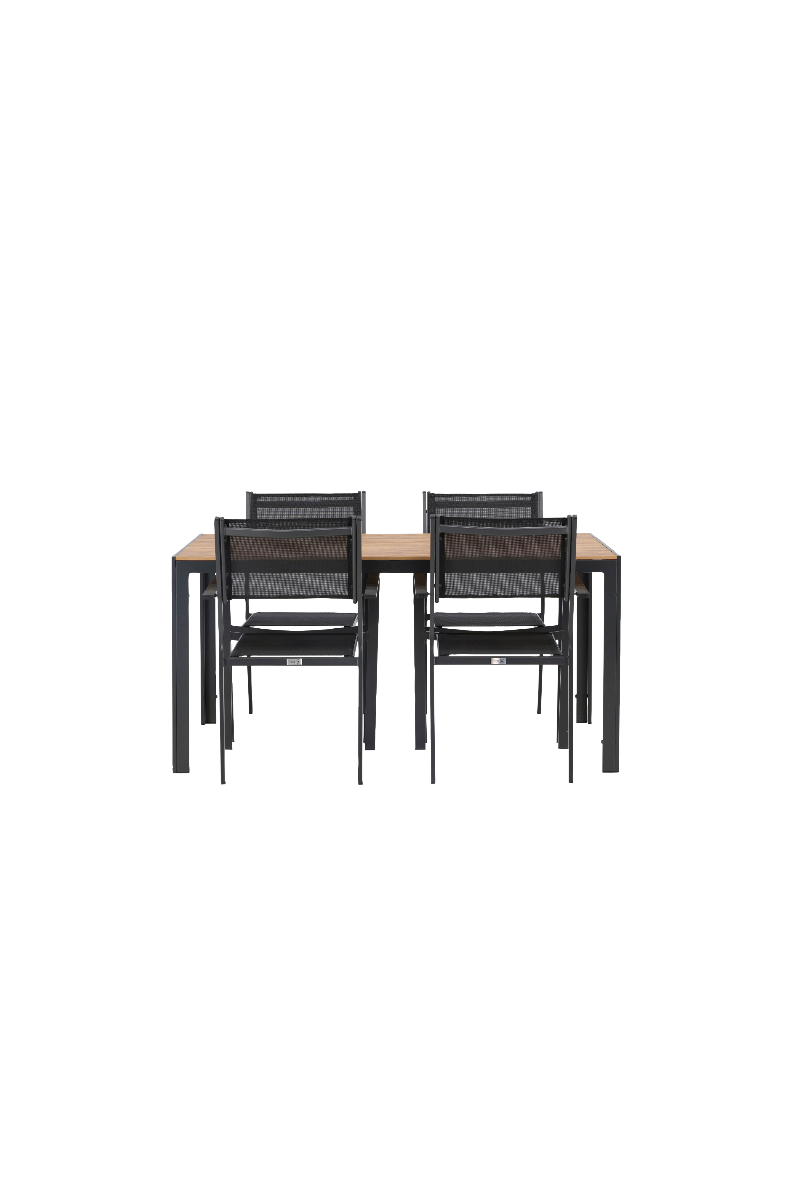 Stilren og smart - en spisegruppe som passer til alt! Det rektangulære spisebordet Break har rette former i klassisk nordisk design med bordplate i kryssfiner og bordben i aluminium. Her i pen match med 4 spisestoler fra serien Copacabana. Stolen er stabelbar for smart oppbevaring, har rett nordisk design i aluminium og sete i Textilene. Møbler uteplassen innbydende og trendy!