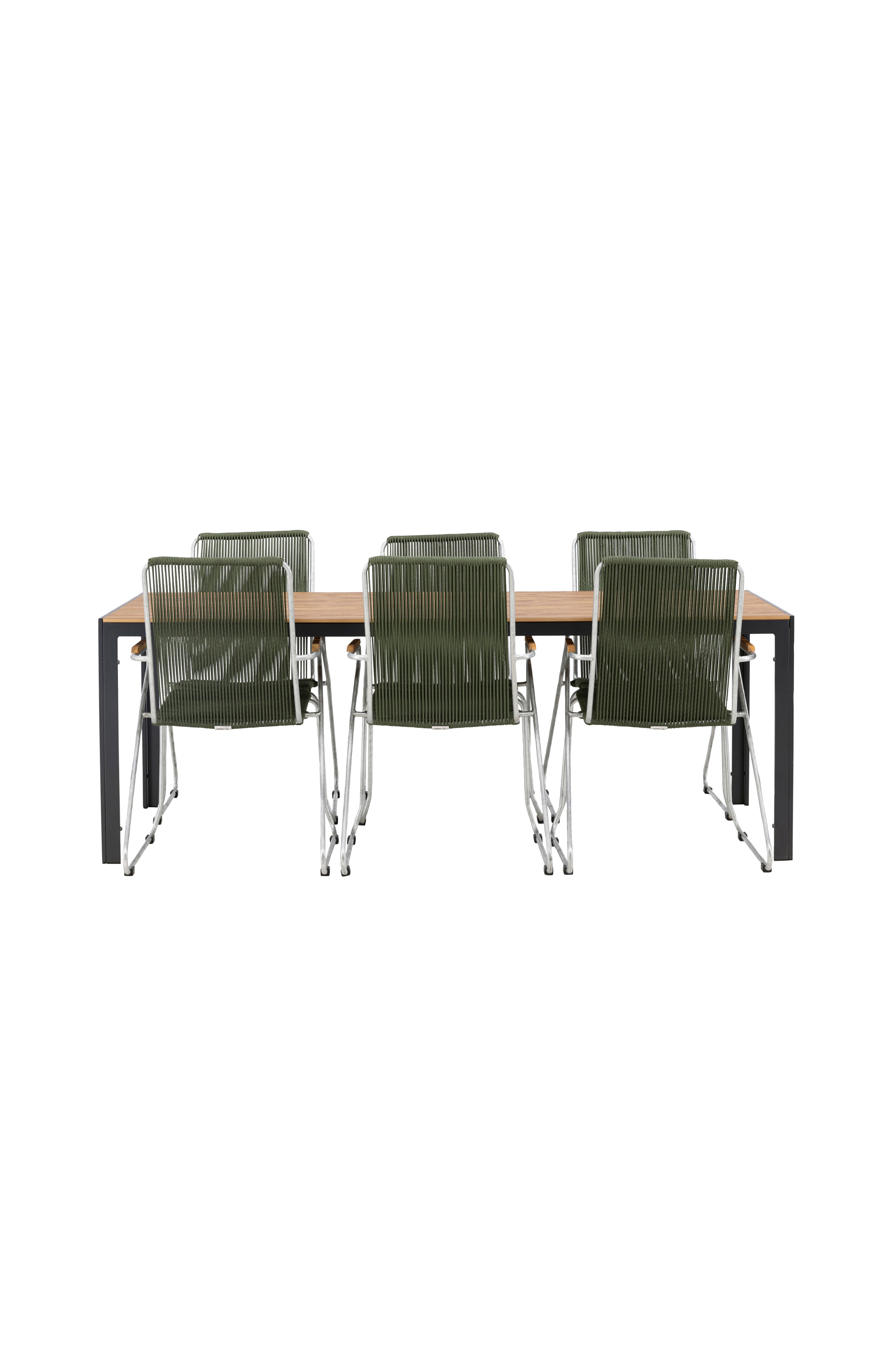 Forsterk hyggen ved sommerens måltider med en trendy og behagelig spisegruppe! Det rektangulære spisebordet Break har rette former i klassisk nordisk design med bordplate i kryssfiner og bordben i aluminium. Her i perfekt kombinasjon med spisestoler fra serien Bois. Stolen har en behagelig design med armlener i teak, sete i tau og stamme i stål. Gjør familien klar for et enestående uteliv!