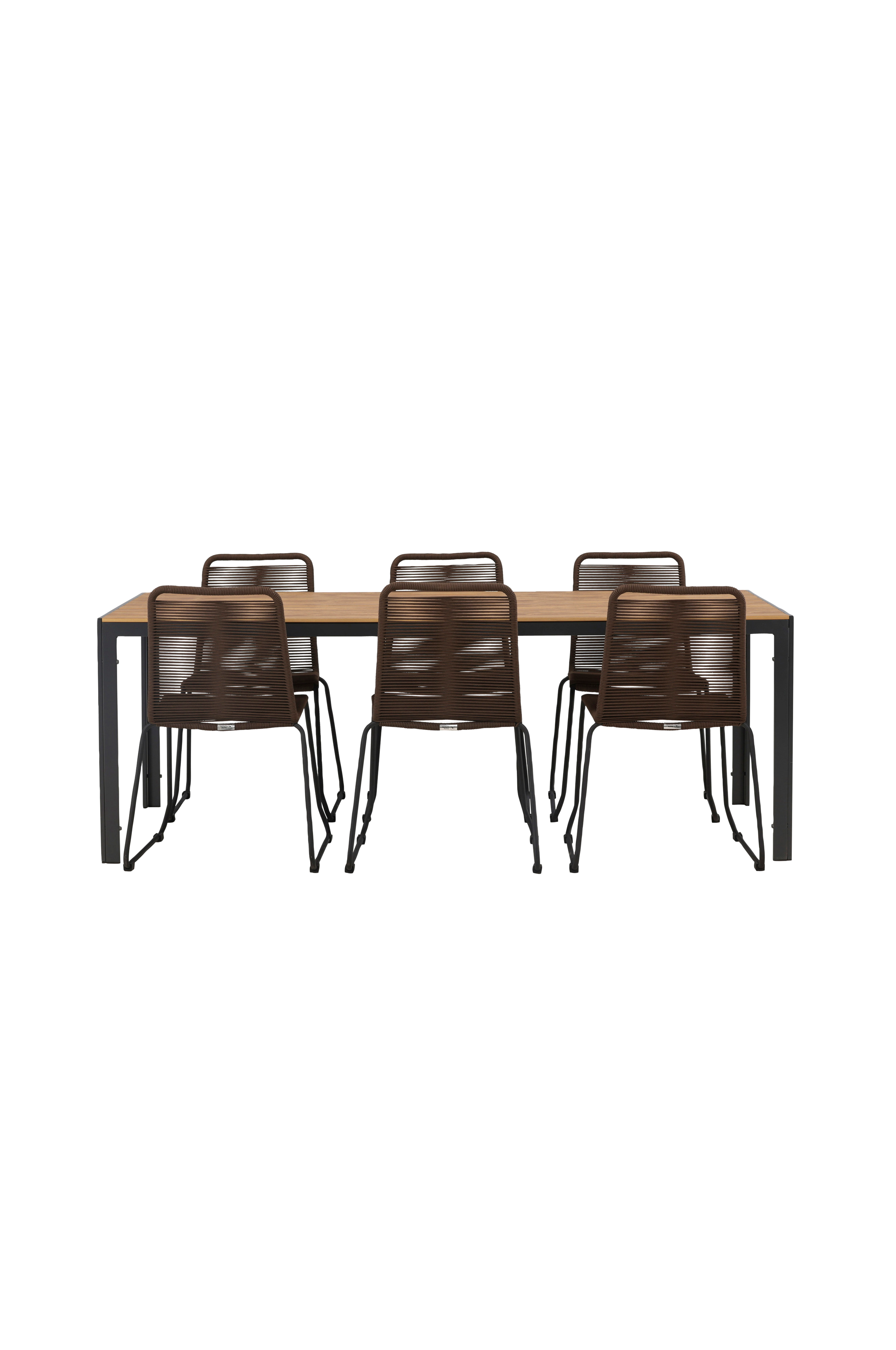 En spisegruppe i jordnære farger og klassisk design! Det rektangulære spisebordet Break har rette former i klassisk nordisk design med bordplate i kryssfiner og bordben i aluminium. Her i lekker kombinasjon med spisestoler fra serien Lindos. Stolen har trendy design med sete i tau og rammekonstruksjon i stål. Her får du et moderne blikkfang til uteplassen og en hyggelig spisegruppe til alle måltider!