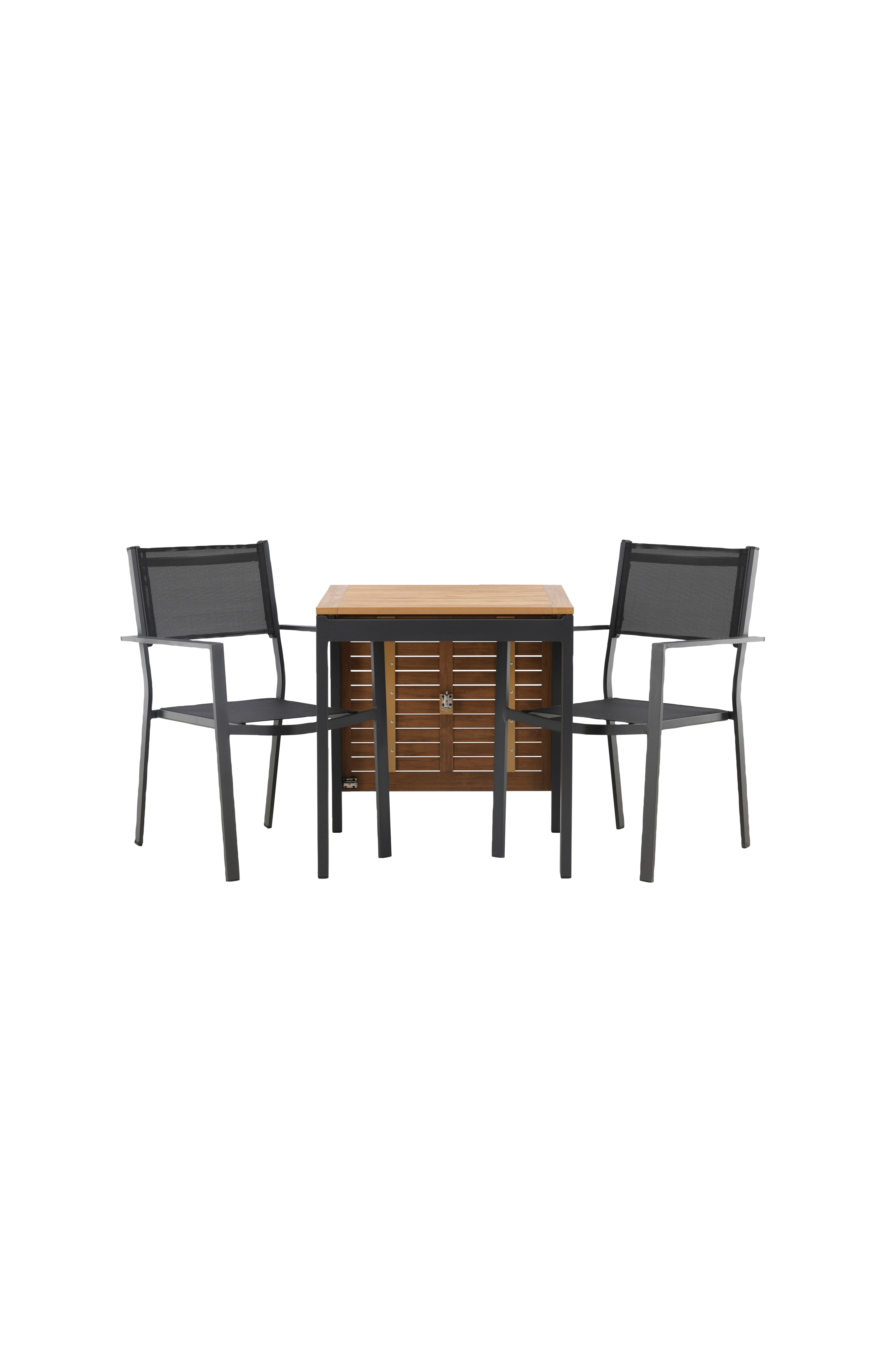 De rette nordiske formene går aldri av moten! Kafebordet Diego er like smart som stilrent med bordplate i aintwood og ben i aluminium. Bordet har også enkel konstruksjon som gjør at du lett feller opp eller ned forlengelsesplater langs sidene. Her i pen kombinasjon med 2 stk spisestoler fra serien Copacabana. Stolen har rett nordisk design i aluminium og sete i Textilene. Kafegruppen passer perfekt til den lille balkongen eller uteområdets solrike hjørne! Bordets mål: 130/70x70 cm.