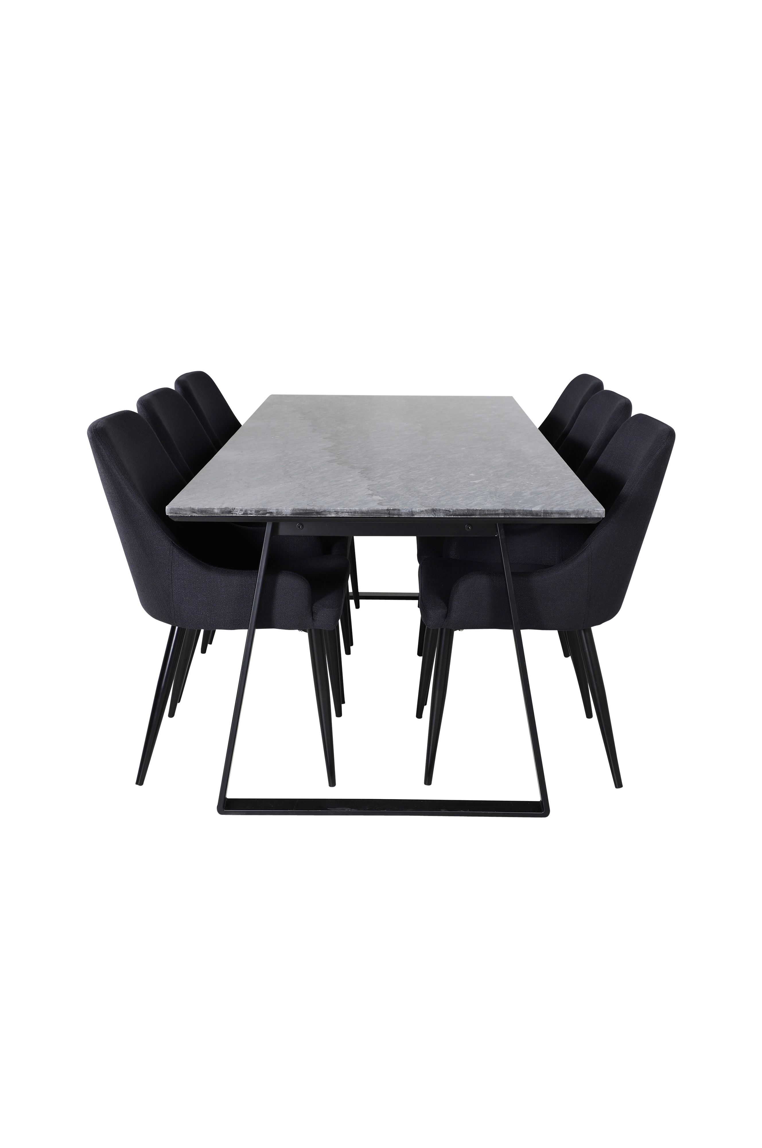 Estelle, et pent marmorbord med lekkert understell. Til spisegruppen kommer de sittevennlige og behagelige stolene Plaza. Skap noe sosialt med plass for samvær!