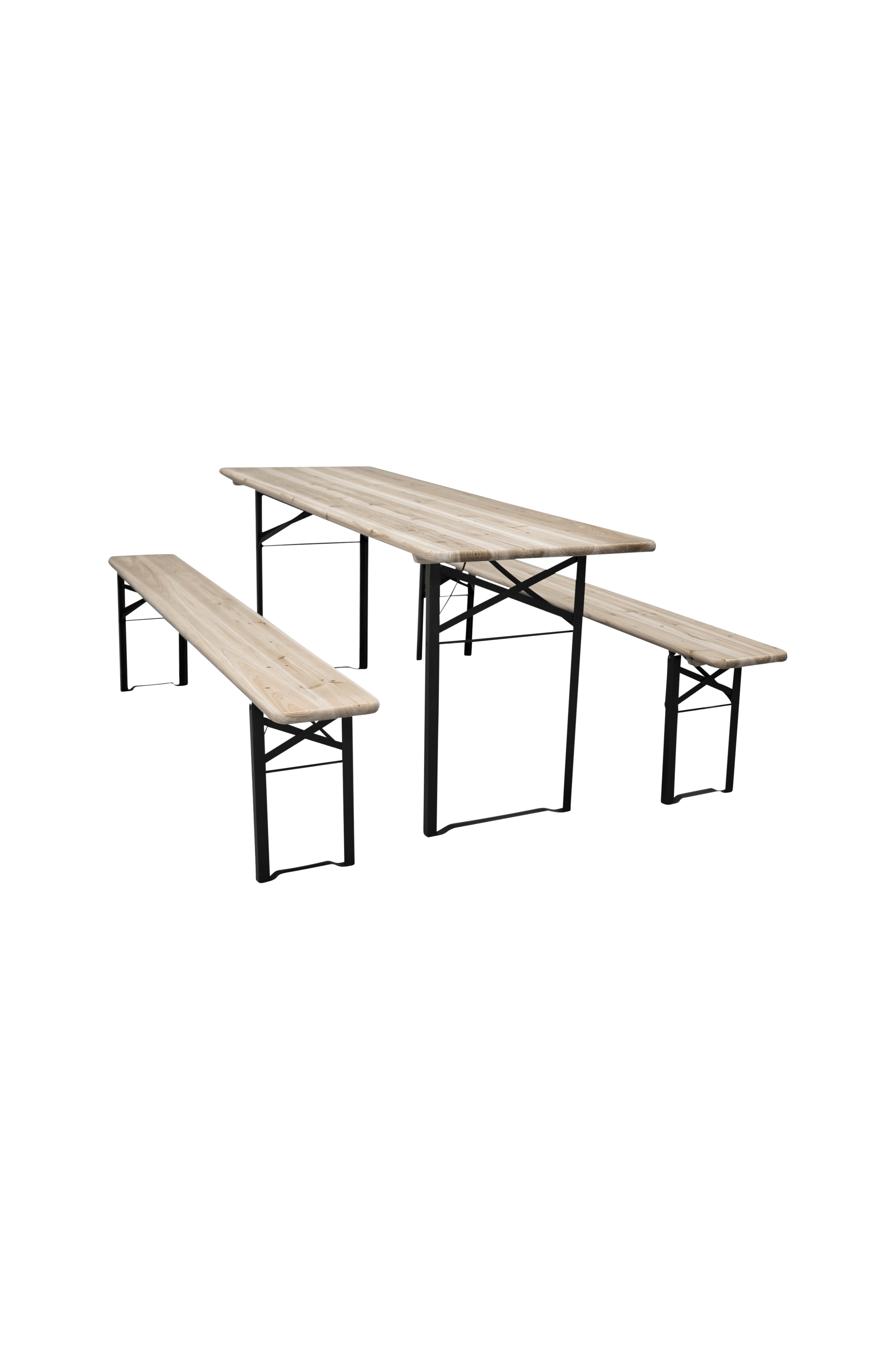 Møbler hagen innbydende, sjarmerende og praktisk med denne spisegruppen fra serien Guniess! Hele spisegruppen er fellbar og inkluderer et bord samt to benker, gjennomgående i stål. Perfekt for alle matstunder i sommer, og de praktiske funksjonene gjør det enkelt å flytte. Gjør dere er klare for masse koselig samvær i hagen!