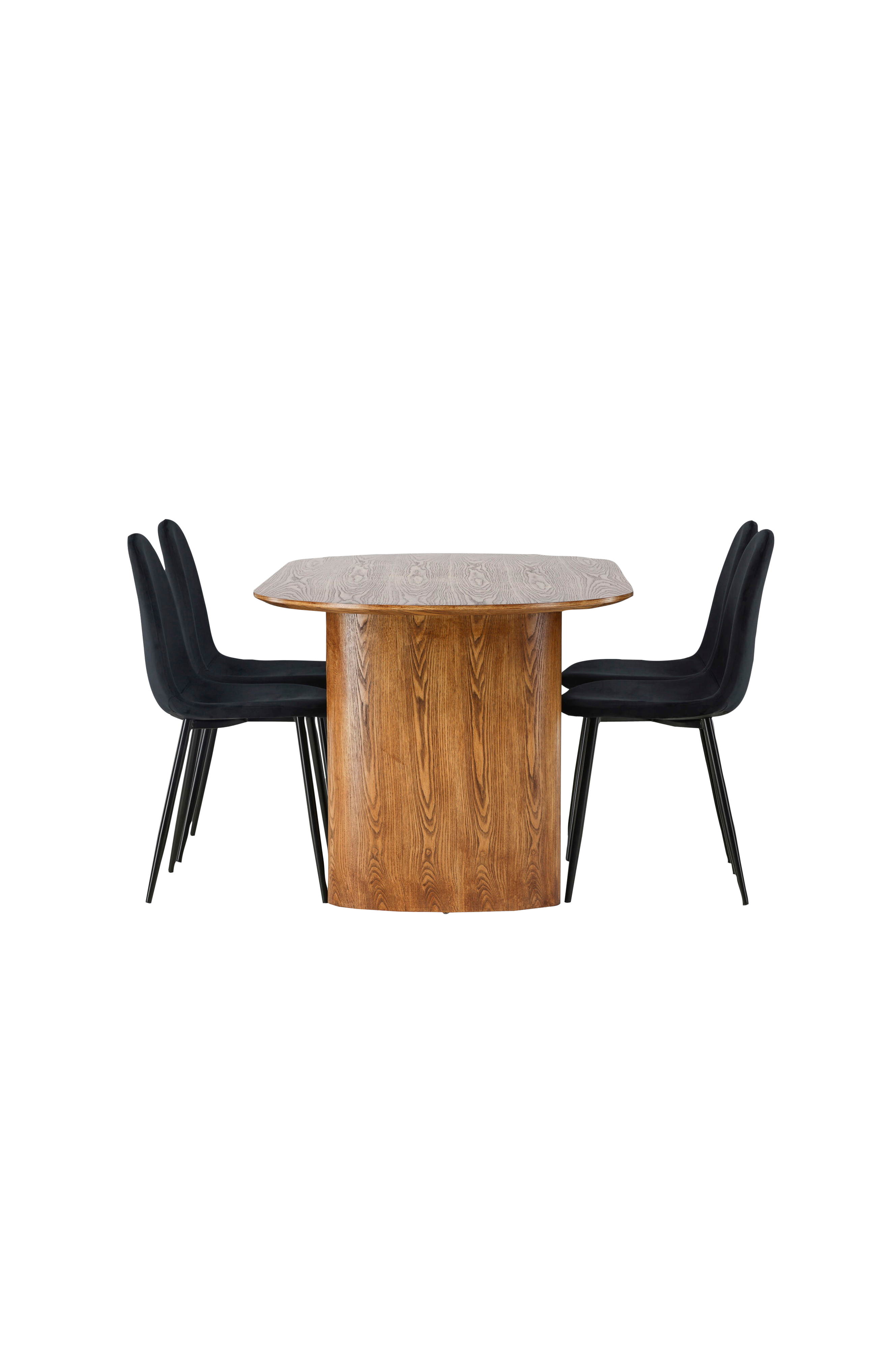 Dette ovale spisebordet fra serien Isolde har en trendy farge i MDF som gir varme og trivsel til stua. Med sin moderne utforming og robuste stamme gir bordet et stødig og pålitelig inntrykk som er perfekt for både familiekvelder og fester. Når du kombinerer det robuste spisebordet Isolde med fløyelsstoler fra serien Polar tar du dine måltider til et helt nytt nivå av luksus. Denne stolen har en elegant design med helkledd finish og ben i metall. Den lett avrundede ryggen og setet i lekkert fløyelsstoff med myk polstring gir deg den perfekte balansen mellom stil og komfort.