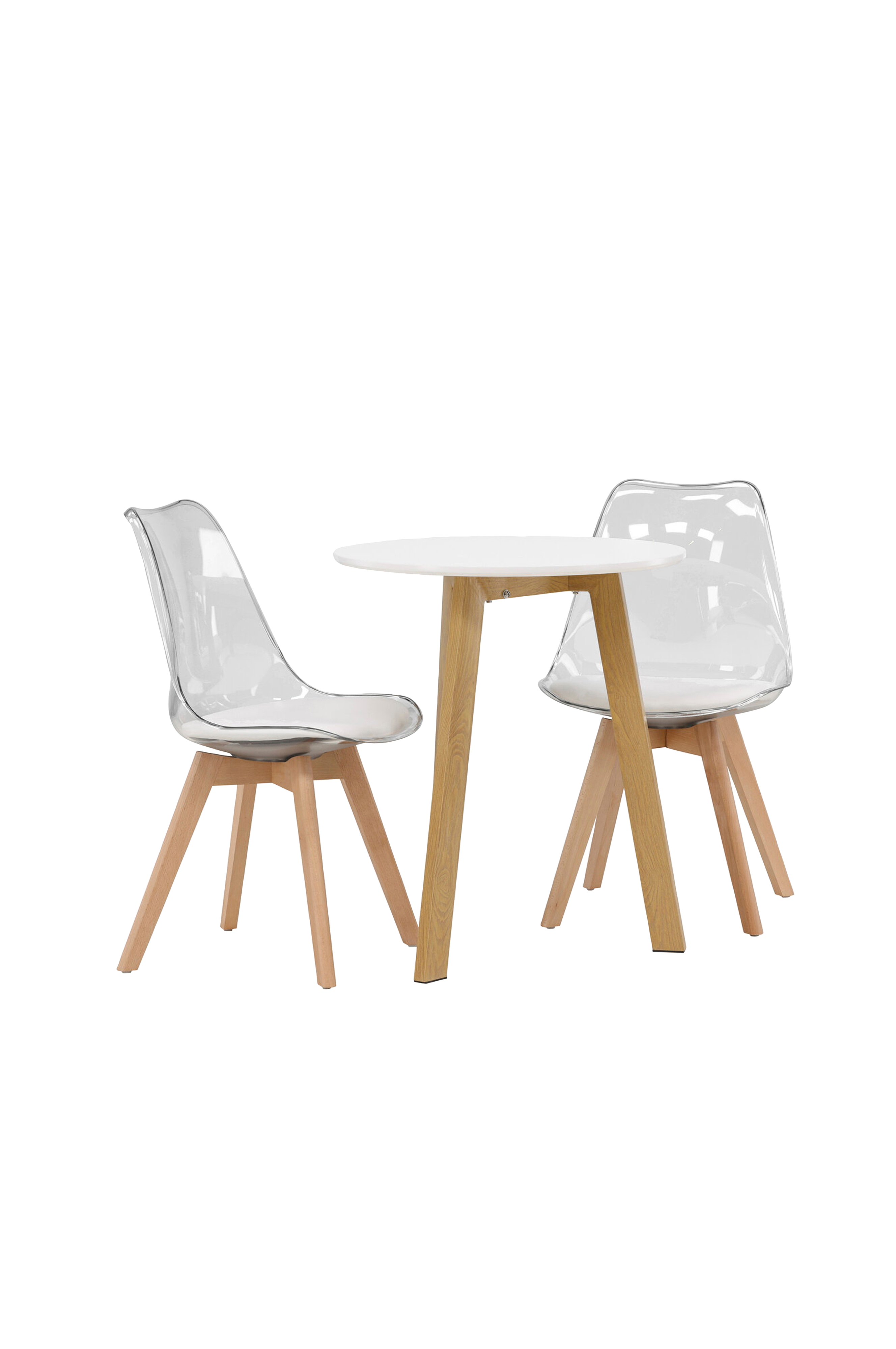 Skap en motebevisst følelse i hjemmet! Det runde spisebordet Leonora har rund bordplate i MDF og en tre-trebent stamme i lekker look. Her sammen med smarte og trendy spisestoler fra serien Edvin. Det transparente setet er i PET med sittepute for ekstra komfort, og stolbena er lett skrånende. Denne kombinasjonen utstråler trendsikkerhet!