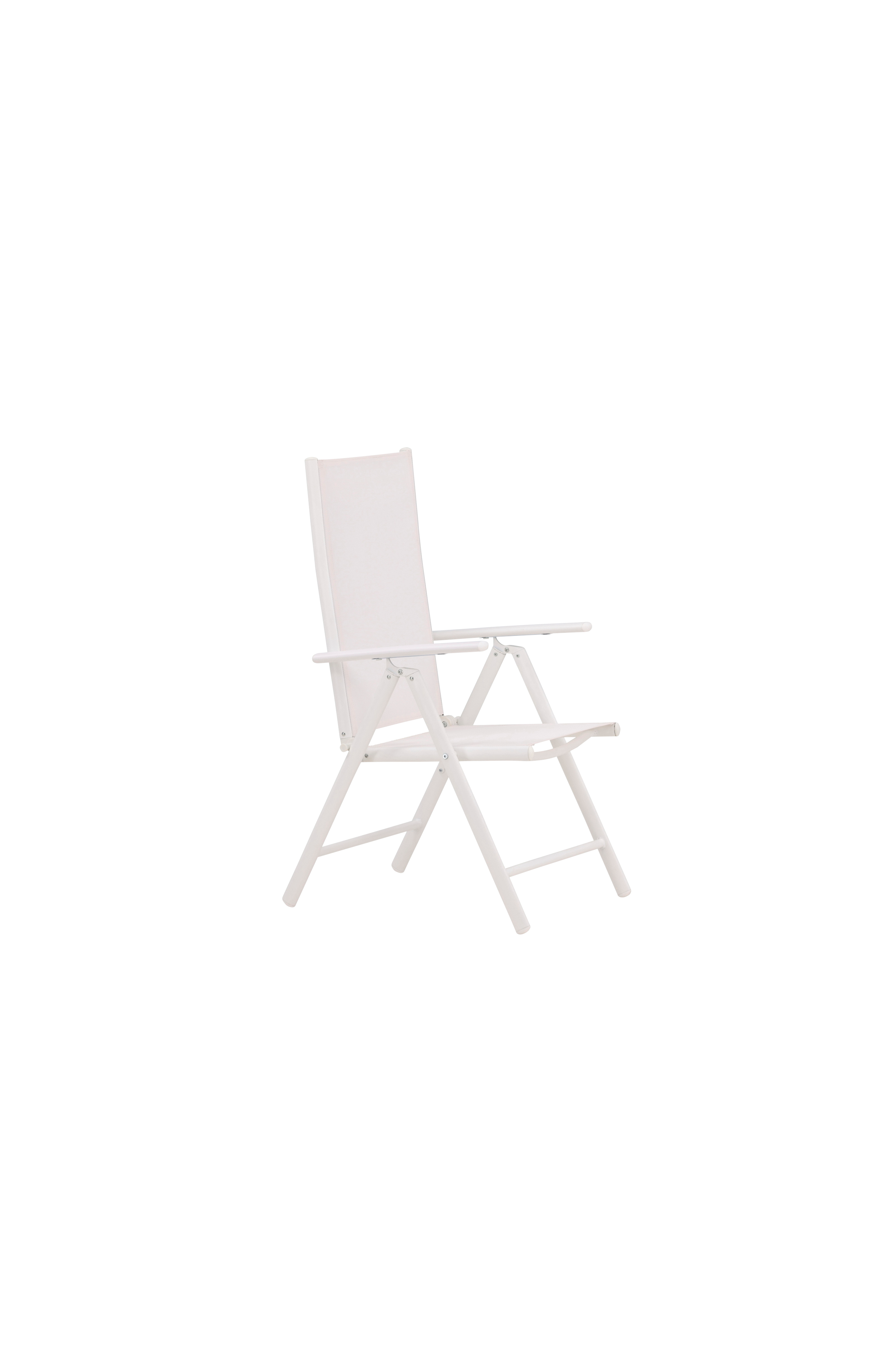 Sitt avslappet i sommer og nyt hyggelige måltider utendørs! Break er en smidig sammenleggbar stol i tidløs hvit farge som går hjem på de fleste uteplasser. Stolens 5-posisjonfunksjon og armlener gjør den veldig behagelig og anvendelig, både som spisestol og til avslapping. Stolen har hvitt sete i tekstil og lettvektig ramme i aluminium. Møbler rundt et matchende spisebord, og inviter til sosiale stunder! Mål: Høyde: 107,5 cm. Bredde: 55 cm. Dybde: 62 cm