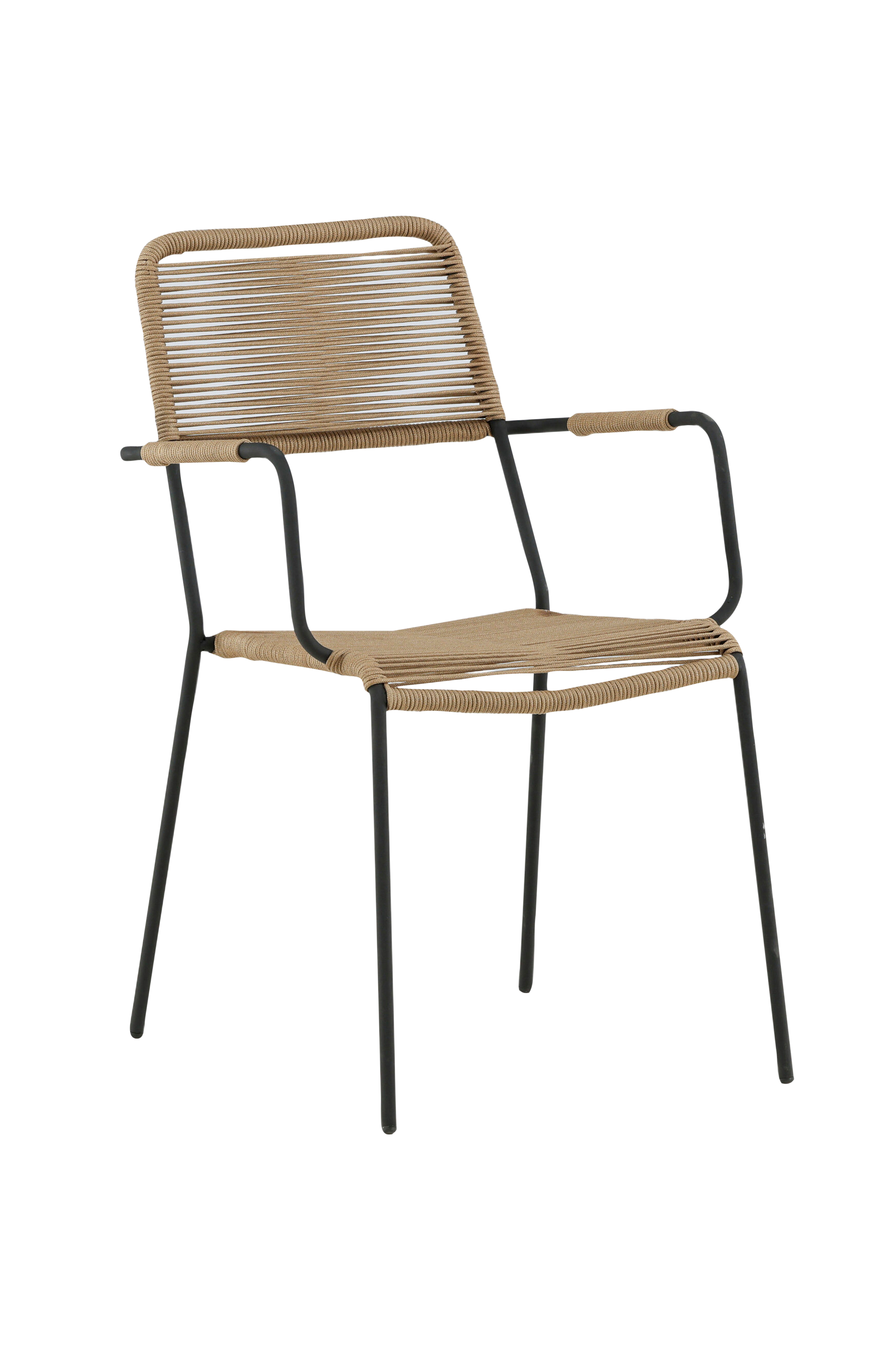 Møbler uteområdet moderne med elegante spisestoler fra serien Lindos. Armlenene er i aluminiumkonstruksjon og setet i vevd tau. Lindos er et ekte designikon som passer både i klassiske og moderne miljøer. Inviter til mange sosiale stunder fremover! Stolen kan stables.
