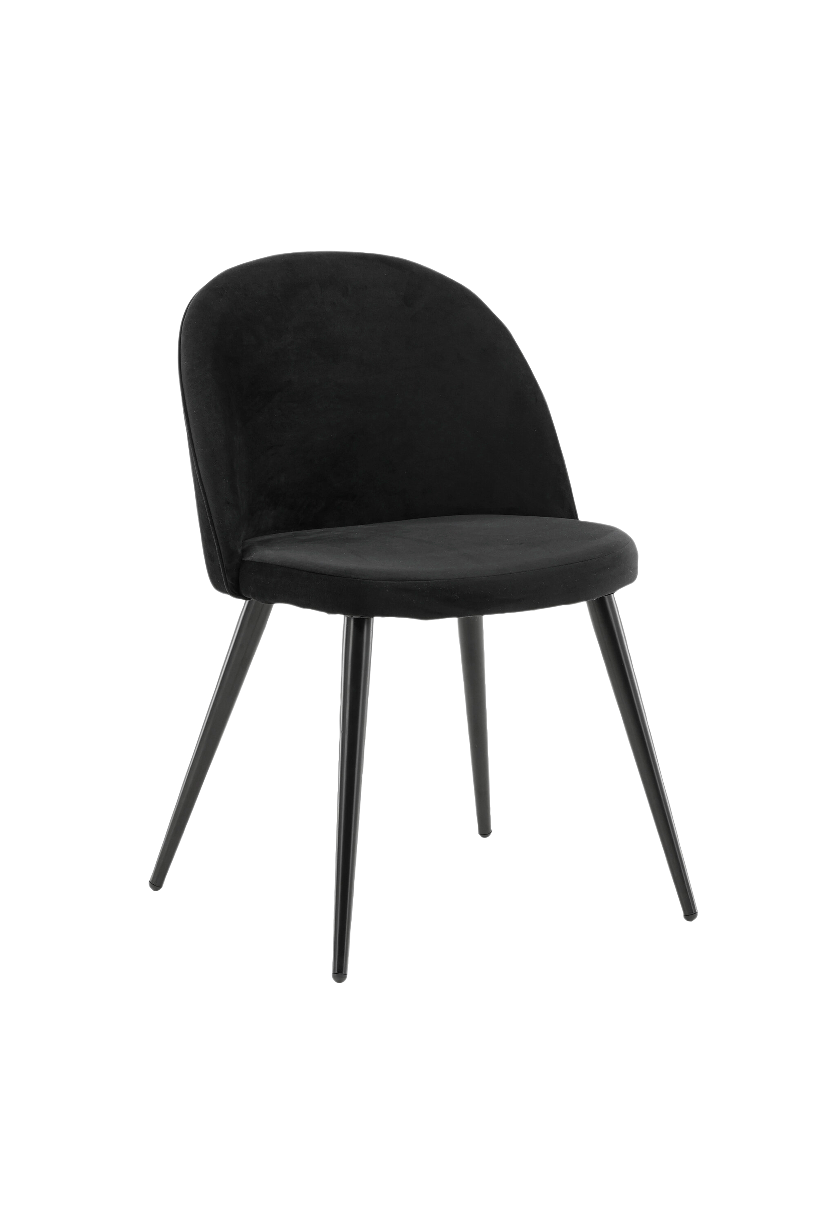 Stolen har helkledd design, ben i svart pulverlakkert metall samt avrundet rygg og sete i fløyelsstoff med myk polstring. Like behagelig som iøynefallende! Noe montering kreves.